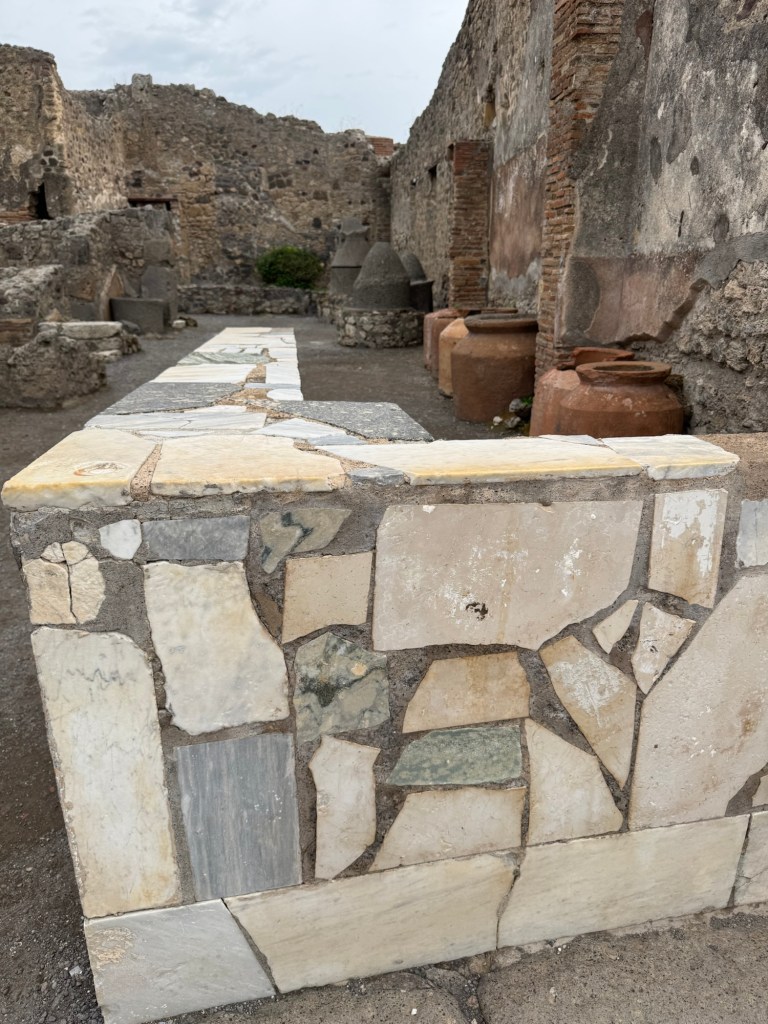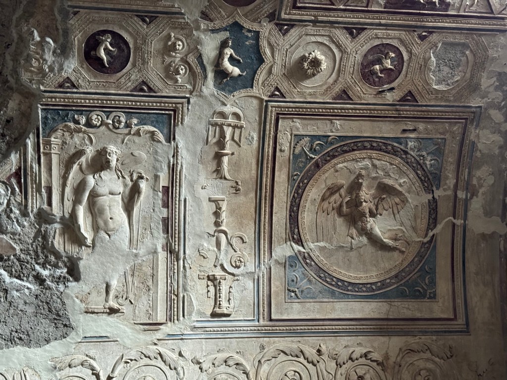 We detoured to avoid the Trevi Fountain as we made our way home. The crowds at the Spanish Steps aren’t bad, but knew the Trevi Fountain was going to slow us down, and not in a good way. But along the way, Jan did spot a building with a very elaborate painted facade.
