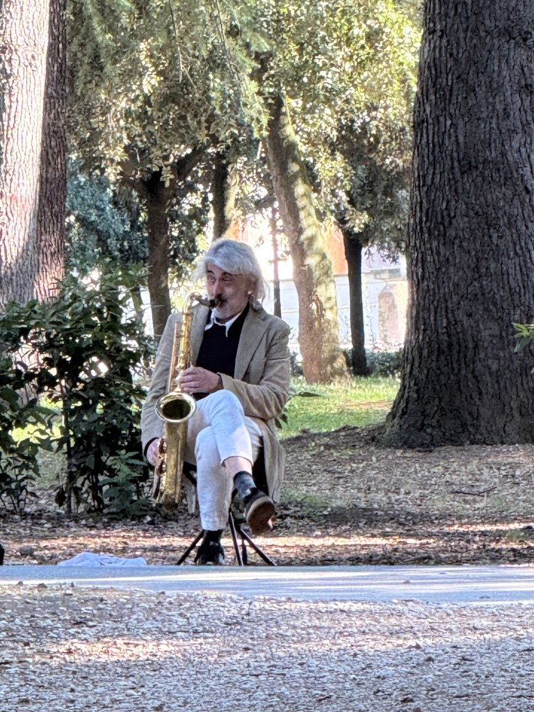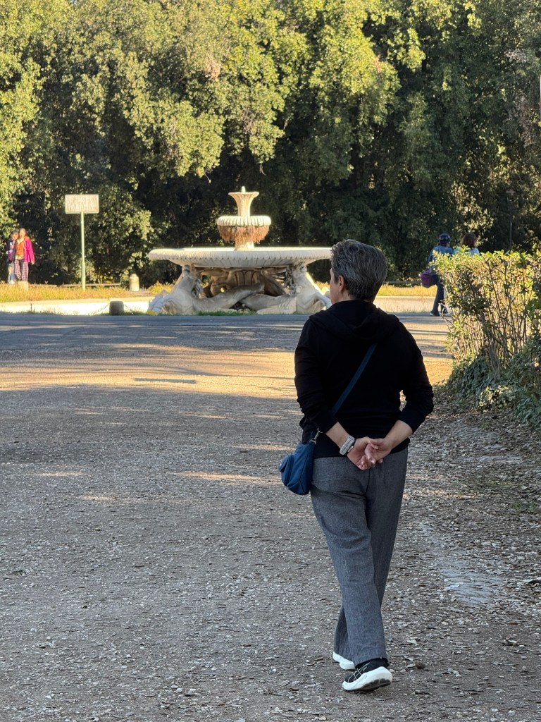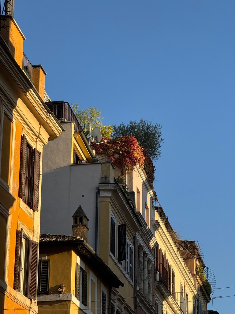 We took a different route back to the apartment. At one point we looked up and saw a rooftop garden. This reminded me of the last time we visited Rome over 20 years ago, when our hotel had a rooftop garden with views over the rooftops of Rome. This wasn’t the same garden, but I’m sure it would be lovely.