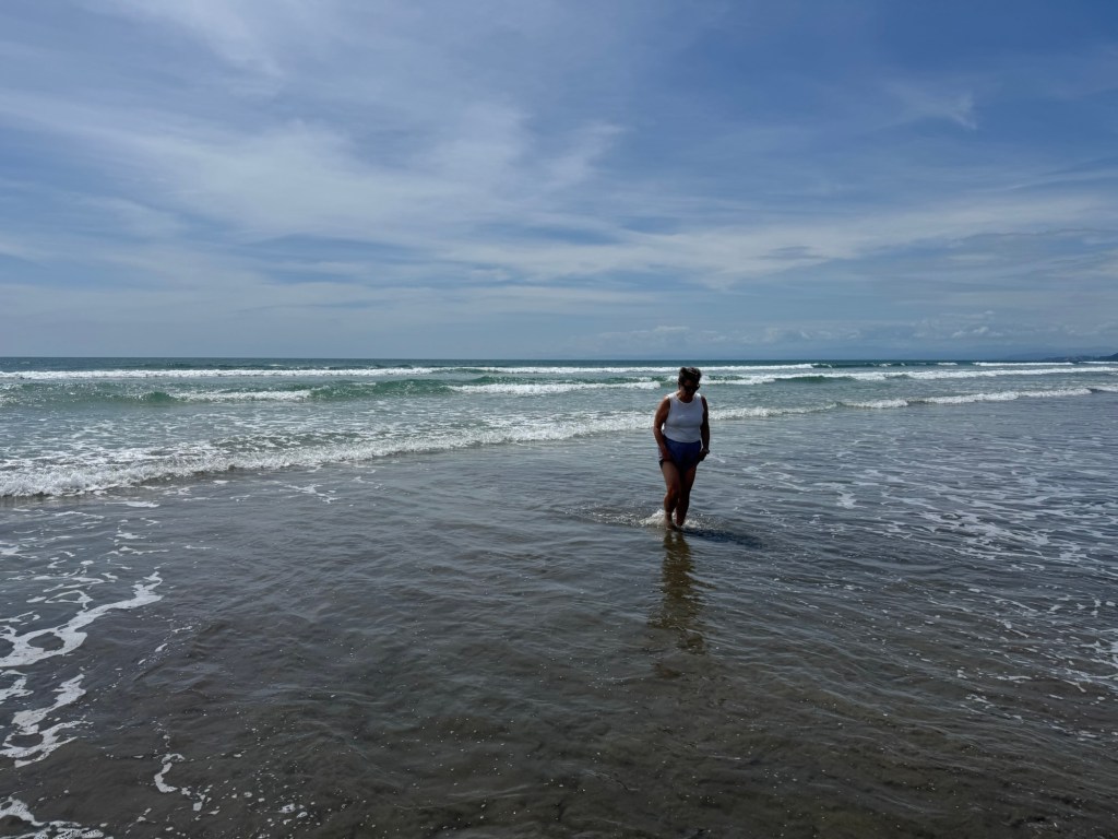 Which brings us back to our relaxing read on the beach. I was tempted to go for a swim, but settled for briefly wading through the surf.