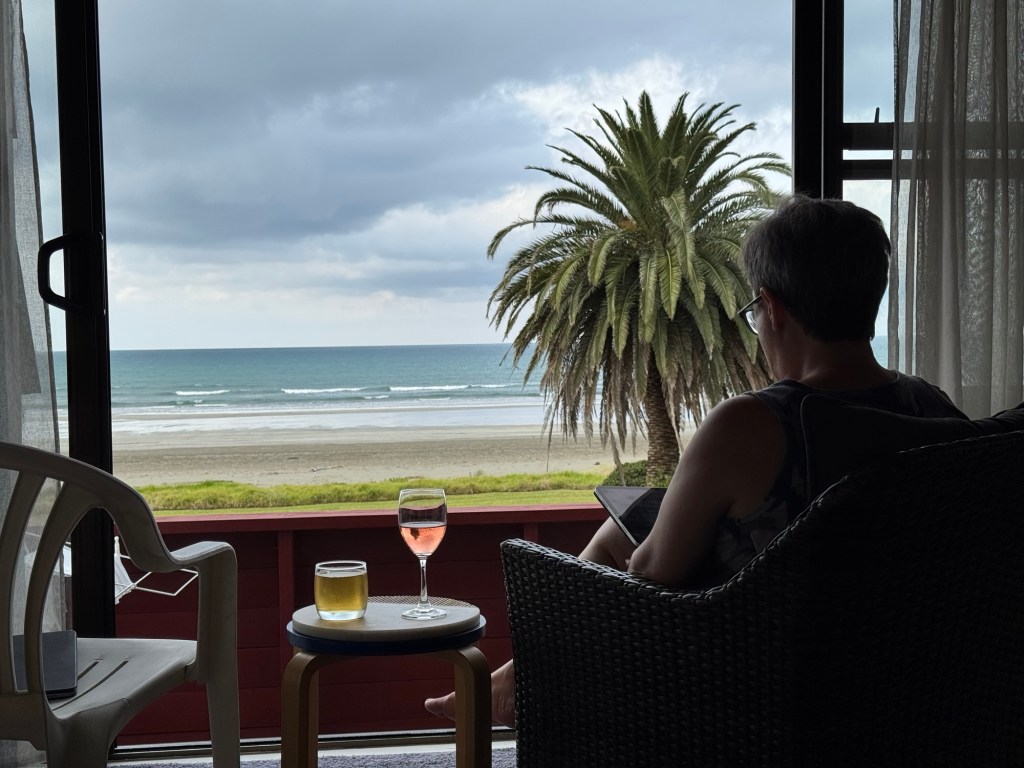 We were sitting on the deck this afternoon, listening to the ocean and enjoying beer and a glass of wine when Jan turned to me and said “now we’ve really arrived in New Zealand. I’ve enjoyed everything we’ve done so far, but this is really why I love coming to New Zealand.” I completely agree.