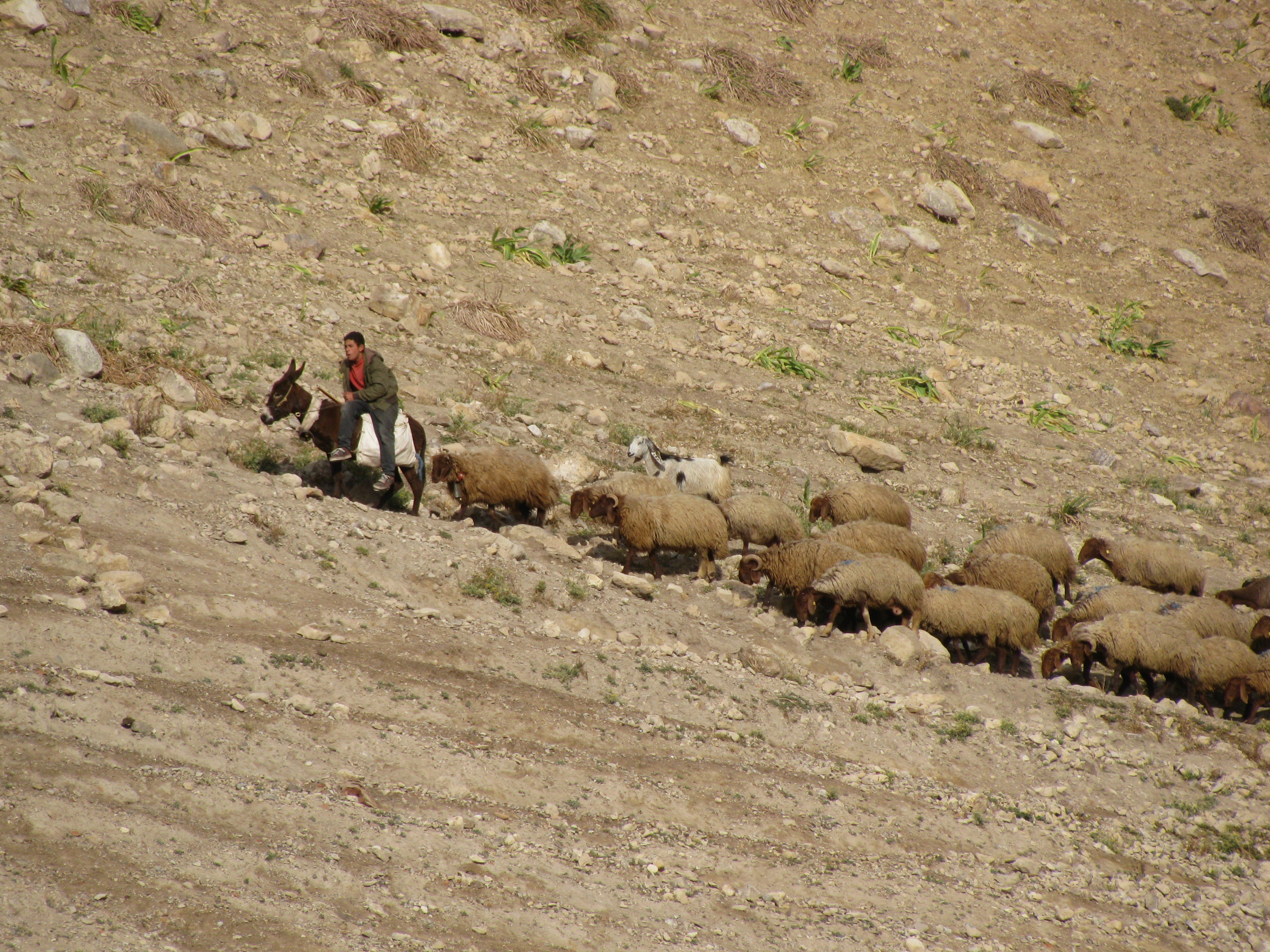 My favorite thing about this picture is that you can clearly see the Mariaa – the male sheep that has been bonded with the donkey, and therefore follows everywhere it goes. The Mariaa has a bell around his neck, and all the other sheep follow the sound of the bell and therefore follow the shepherd, who is riding the donkey. I wrote more about this in a previous post here https://ifitwastoday.wordpress.com/2013/04/14/not-what-it-seems/