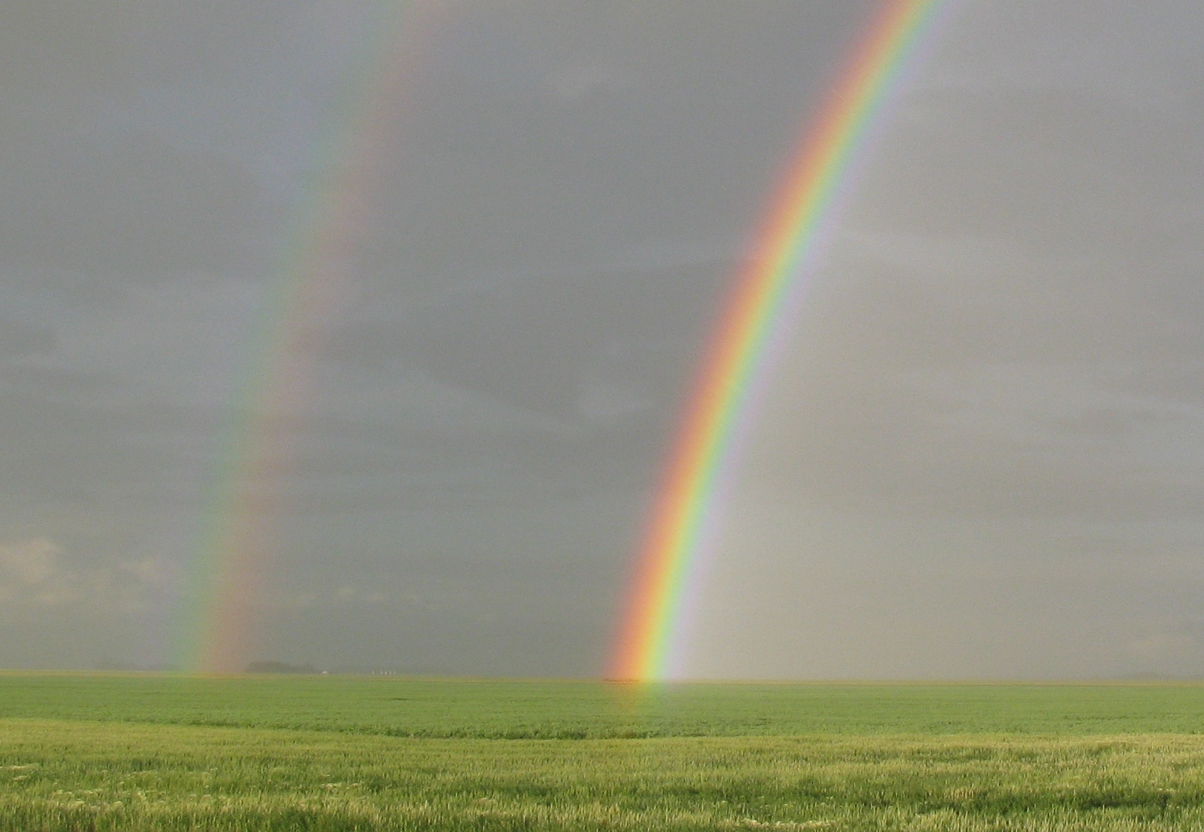 Most Cool! The thing I like about double rainbows is that the colours of the second are the mirror of the first/primary (something about double refraction that I haven’t tried to wrap my mind around). The distance between the two is great, but then it is out West …