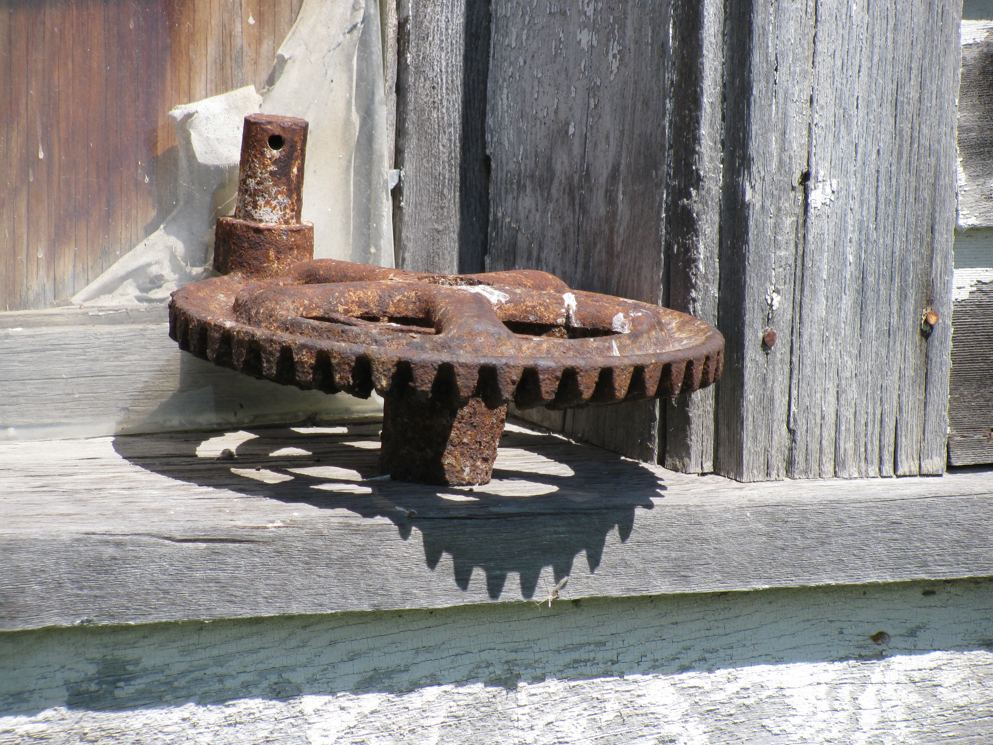 I found this gear on the window ledge of an abandoned building in Saskatchewan. More details to follow, but I like the effect so I thought I’d share this one today.