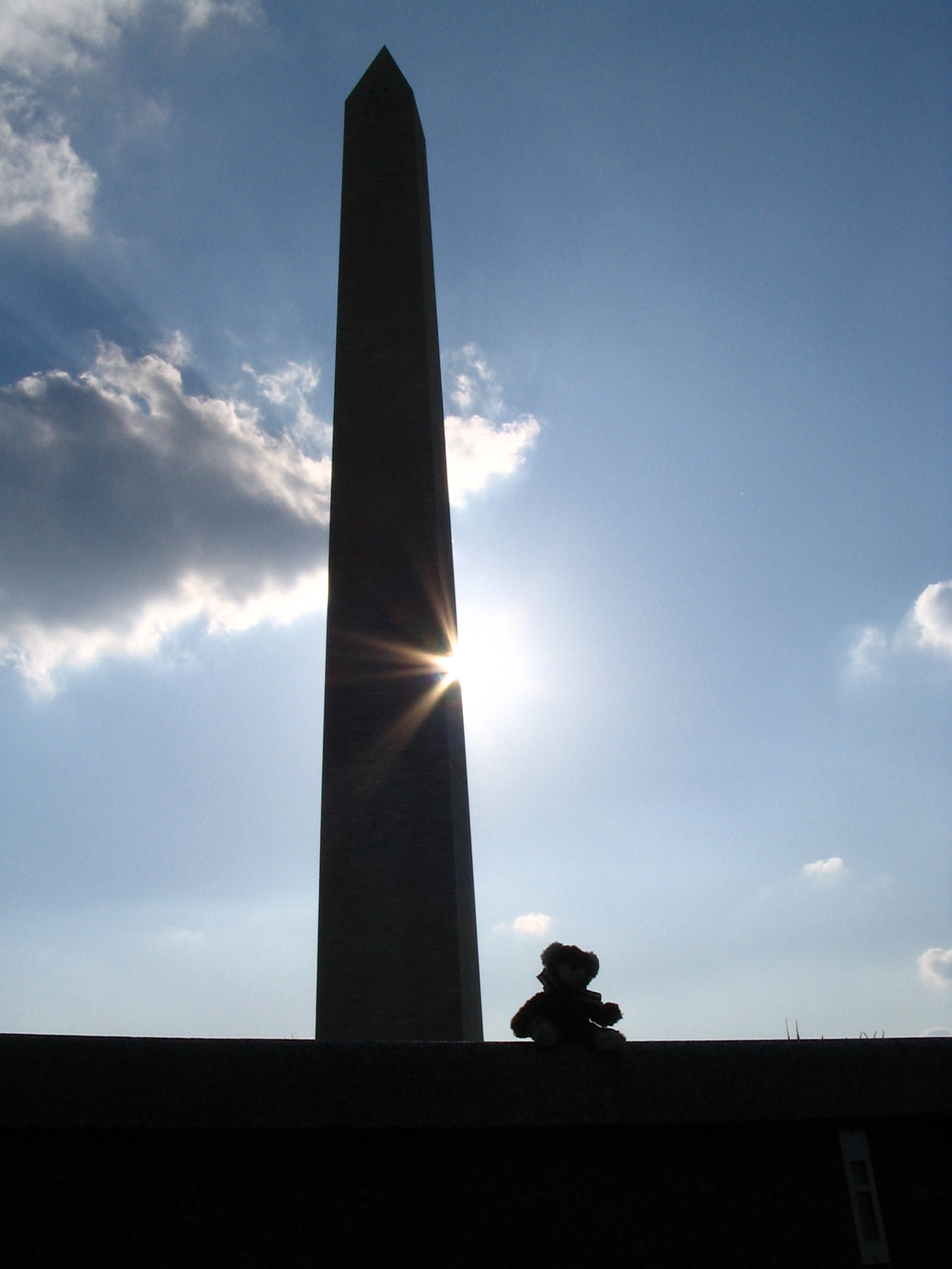 My last post seemed to get a pretty universal rating of “creepy”, in spite of receiving quite a few “likes” – often from the same people. I’ll take that as confirmation of my initial uncertainty about exactly what to make of the scene. But in any case, today I’ll try to go for something a little less weird – a picture of Bernard, a cuddly teddy bear, in front of the Washington Monument.