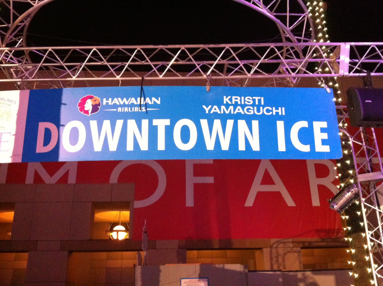 This was ironic on so many levels. Not only was it well above freezing, in California, but the outdoor rink was sponsored by none other than Hawaiian Airlines. Can anyone tell me exactly why Hawaiian Airlines would want to advertise by sponsoring an outdoor skating rink in San Jose? I must be missing something here.