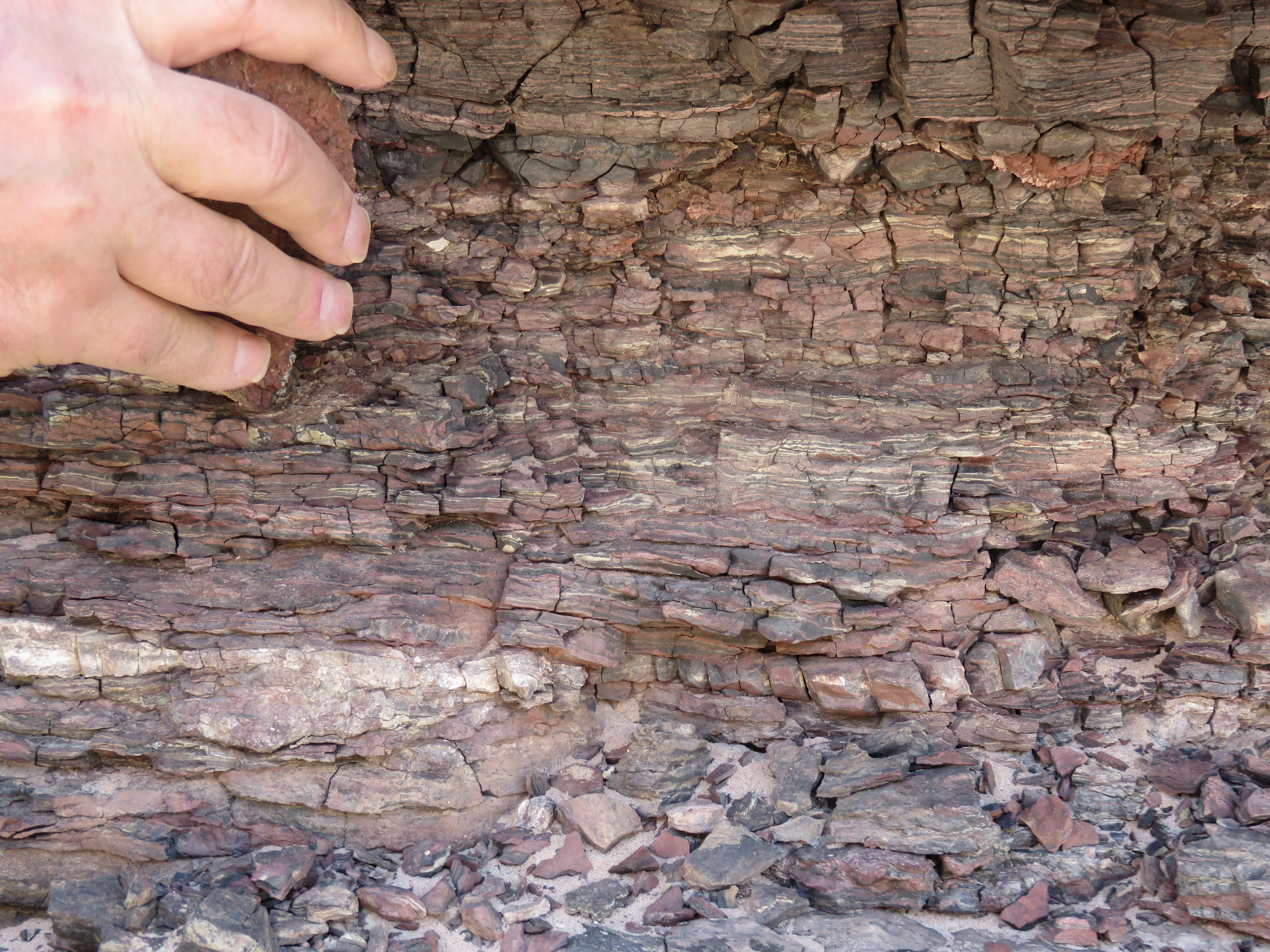 Suddenly everything was clear. It turns out that just below the vein of copper ore there is a layer of loose packed rock that literally crumbles away when you scrape at it with a rock. The source of the rubble around the mine entrance was explained. And mixed in among the rubble, it wasn’t hard to find chunks of copper.