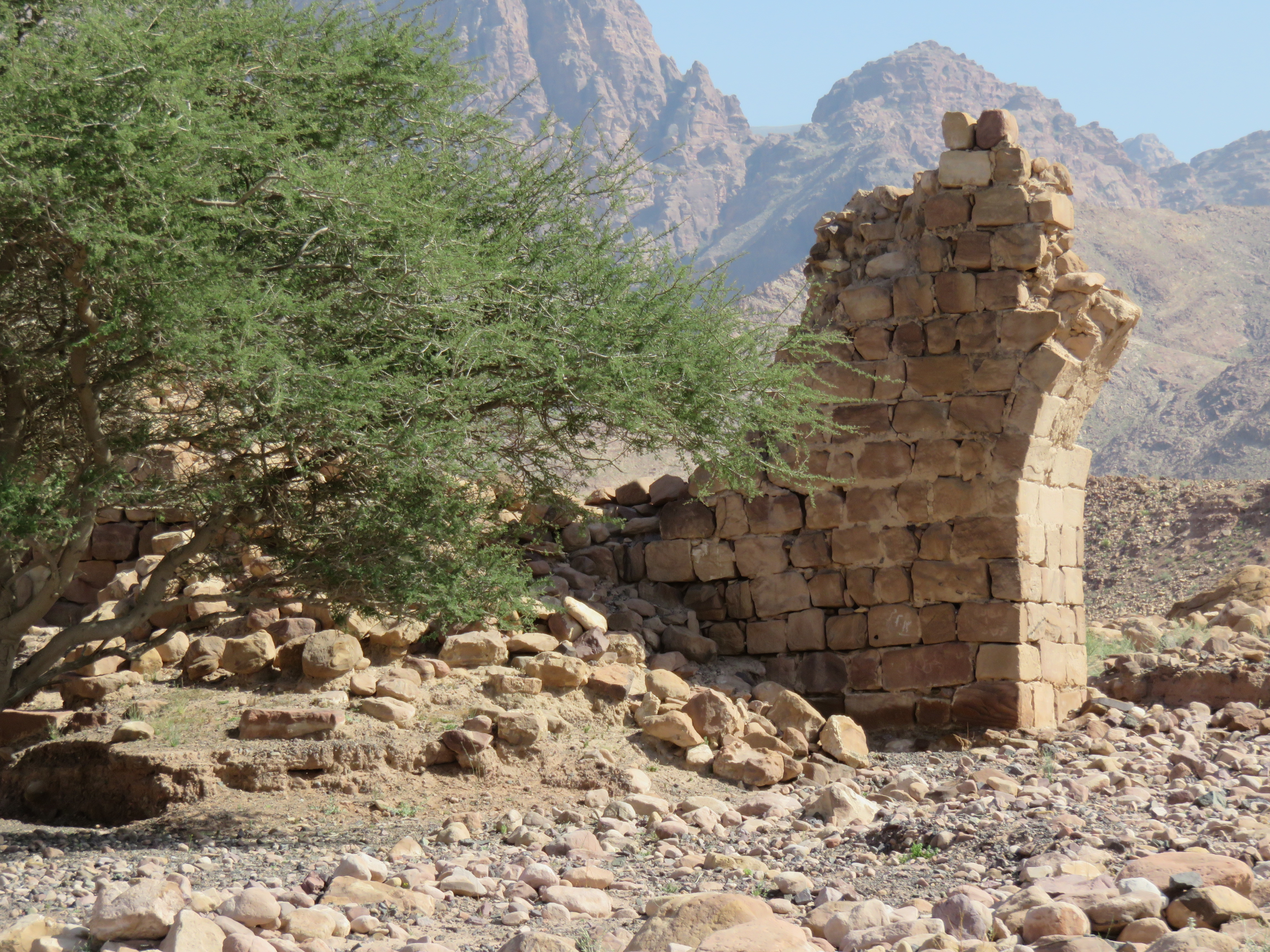 On my first visit to Jordan we hiked down Wadi Dana, emerging into Wadi Araba near Feynan Lodge. We had heard that you could still see ancient copper mines in the area, so when we spotted this, we figured that is what it might be.
