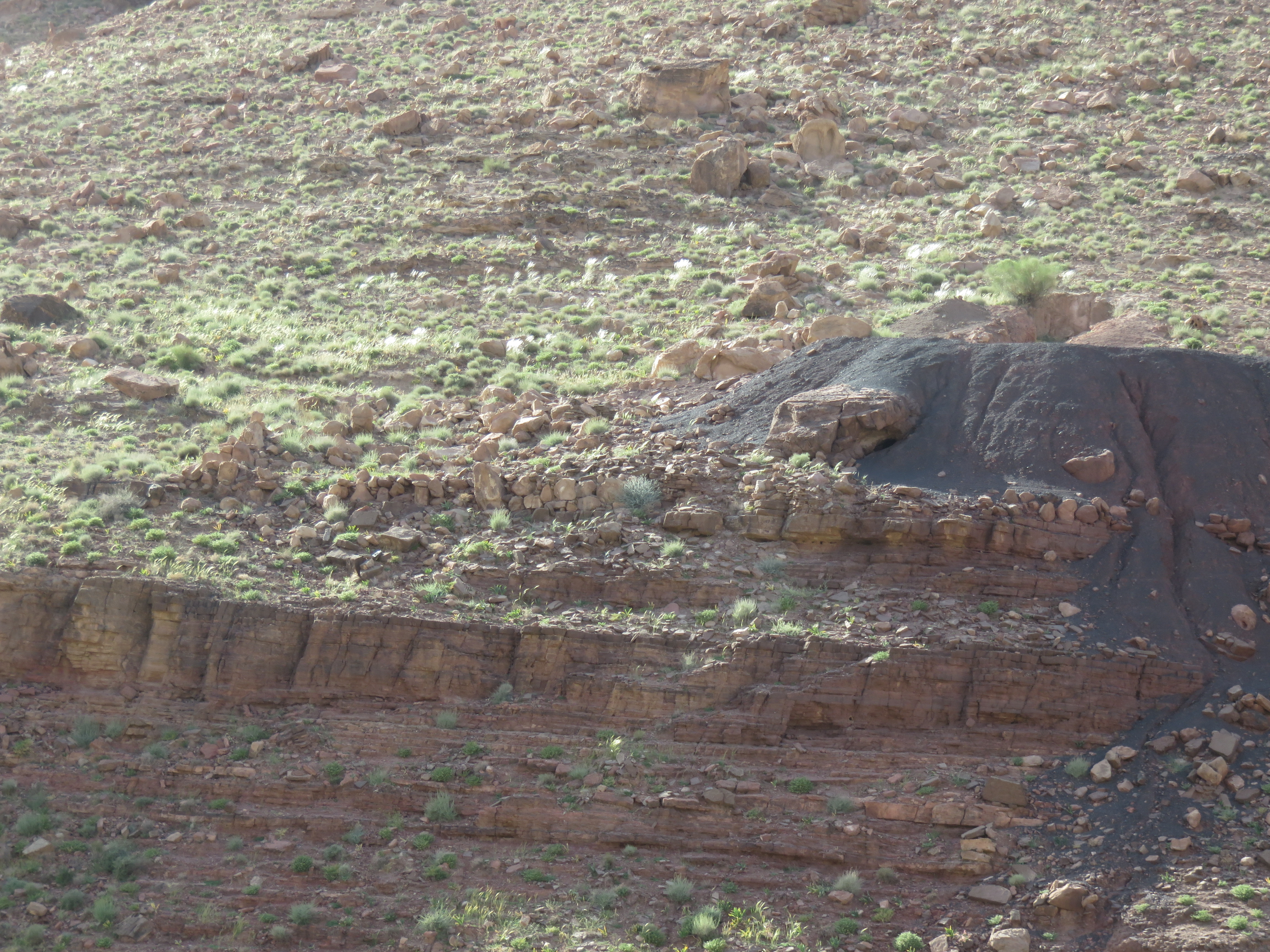 You could just catch a glimpse of something that appeared to be the opening to the mine, and the pile of black rubble was clearly man-made. But beyond that, the details were, to say the least, unclear. To be completely honest, the fact that Feynan lodge offered an “Ancient Copper Mine” tour was one of the reasons we decided to visit in the first place.