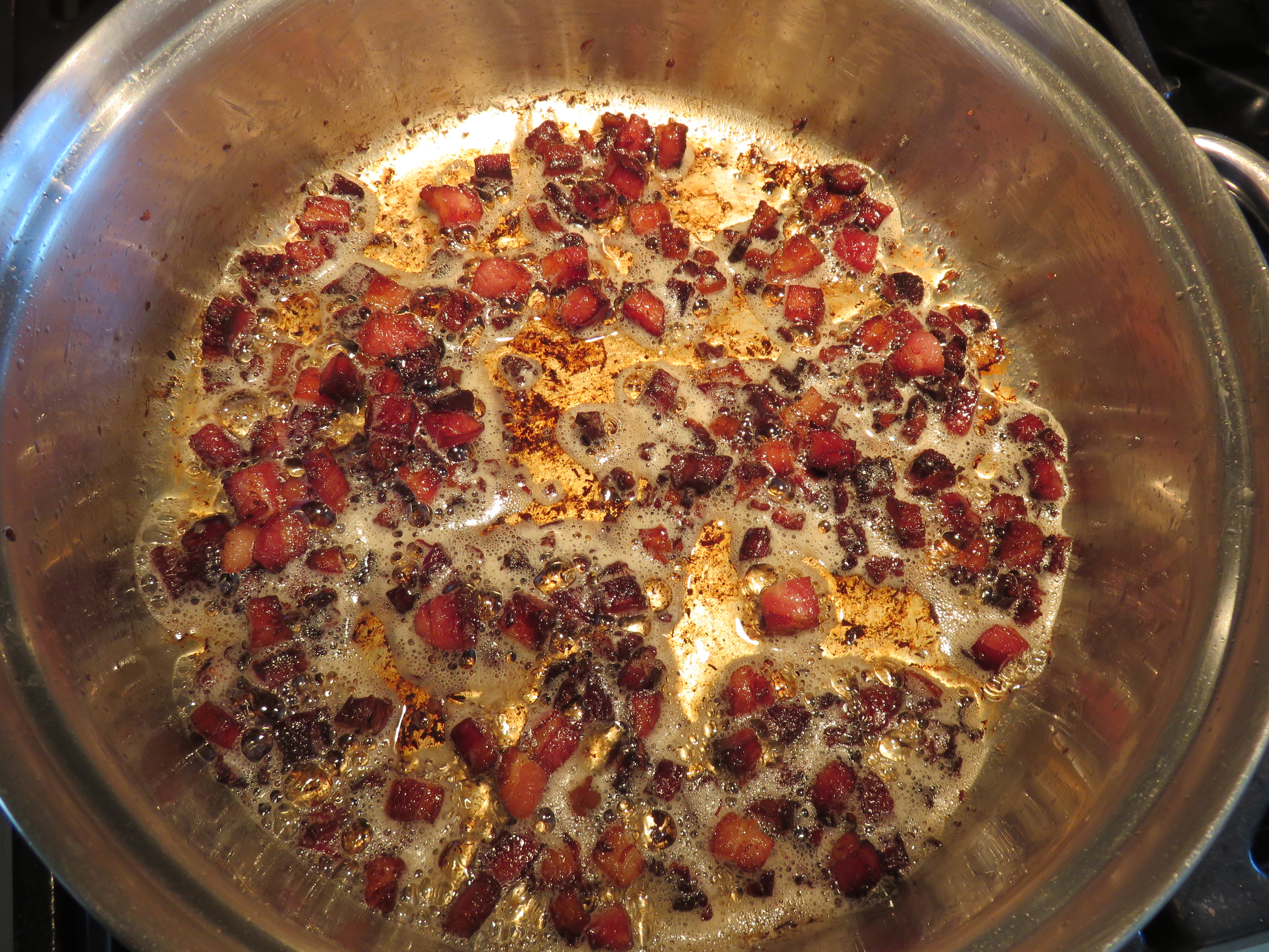 Next comes “lardons” but we opted for pancetta, which worked just fine.