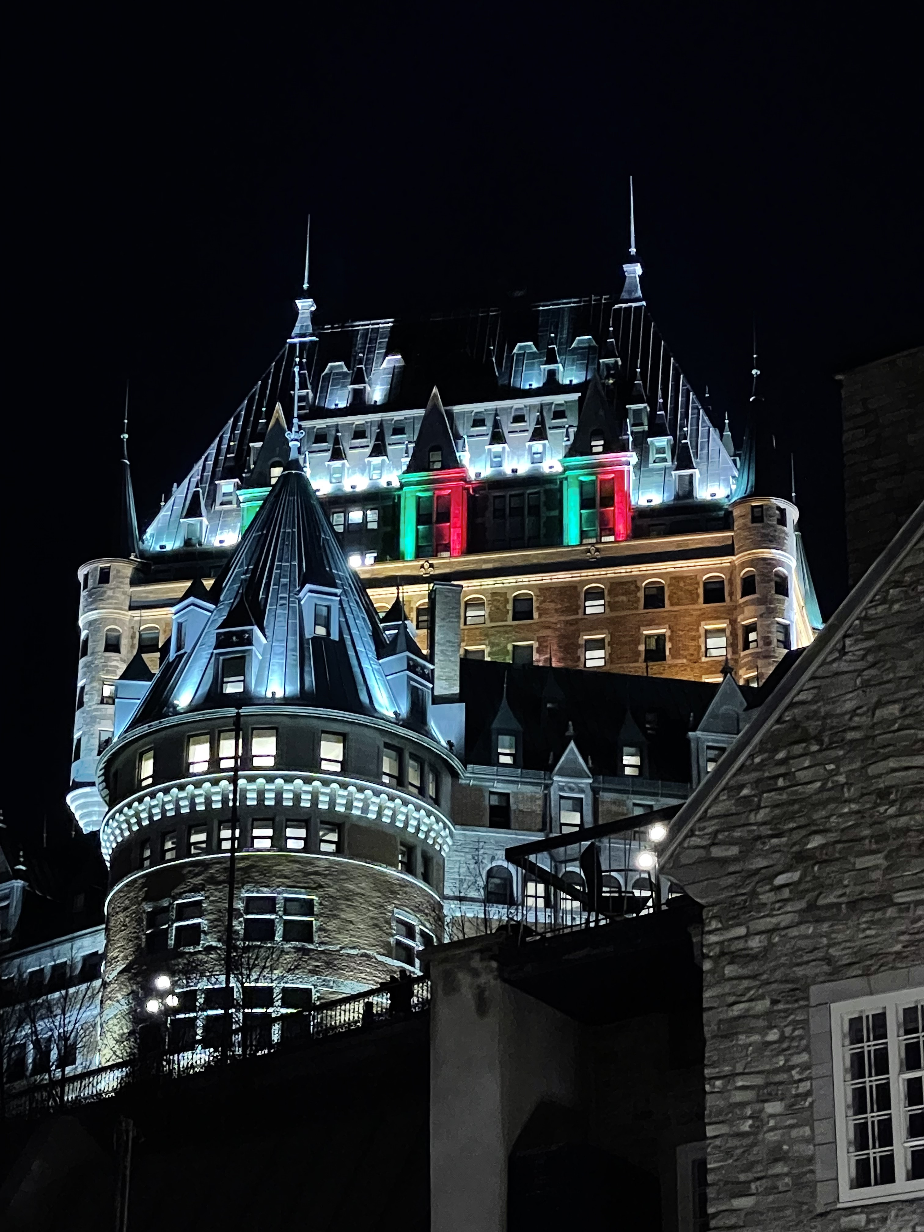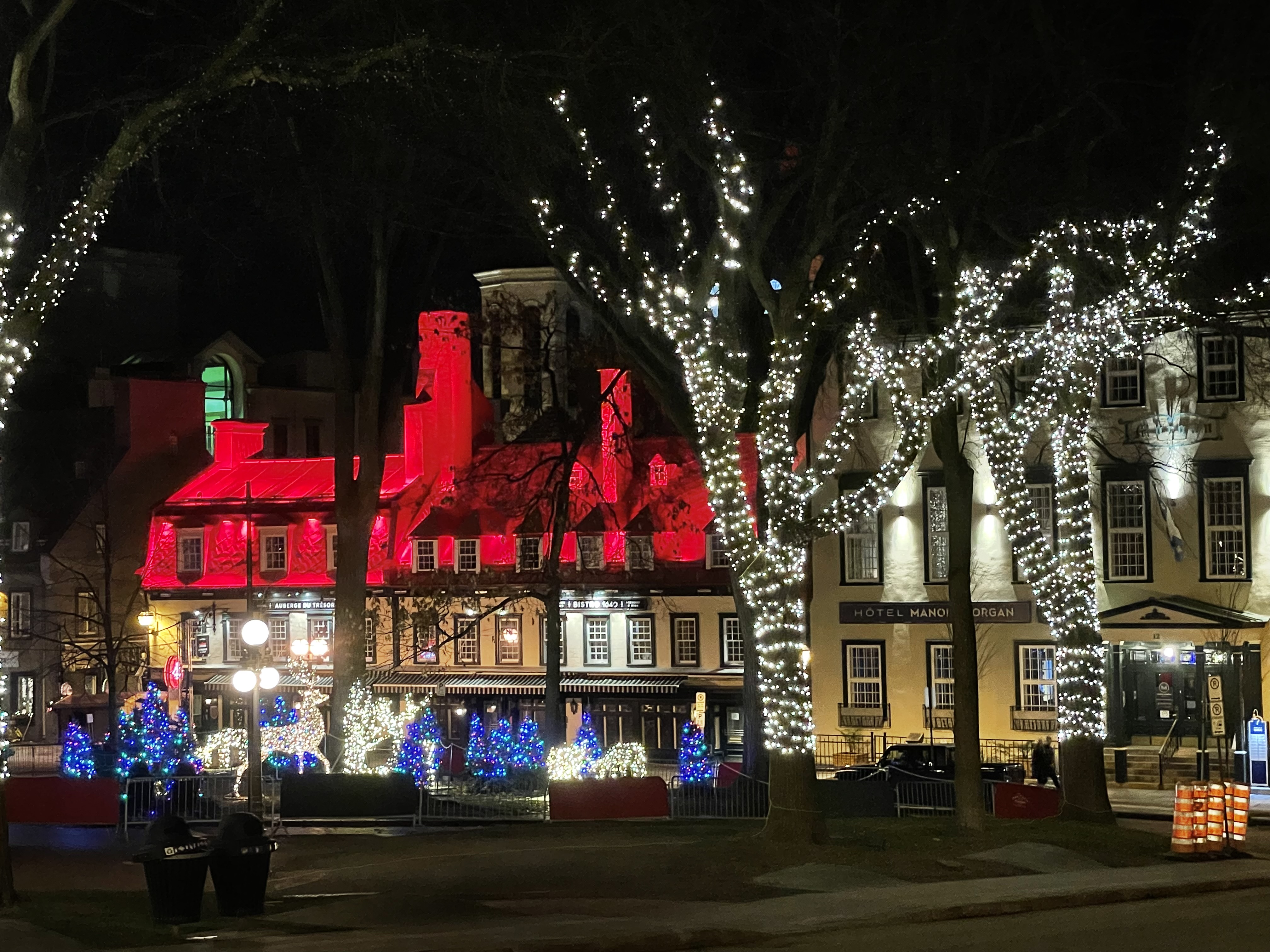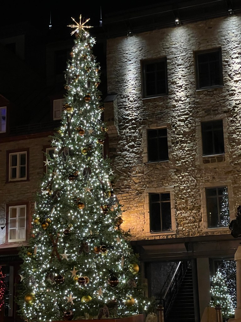 I haven’t posted in quite a while. I usually post when I have the opportunity to take pictures of new and interesting places. Like when I travel. And you know … there has been this pandemic thing that has thrown a wrench in the works for travel. But things are slowly returning to normal so we decided to take a train trip to Quebec city. We are staying in the old city, which is a wonderful place. And it is getting ready for Christmas, so lots of lights at night. Here are a few to give you an idea.