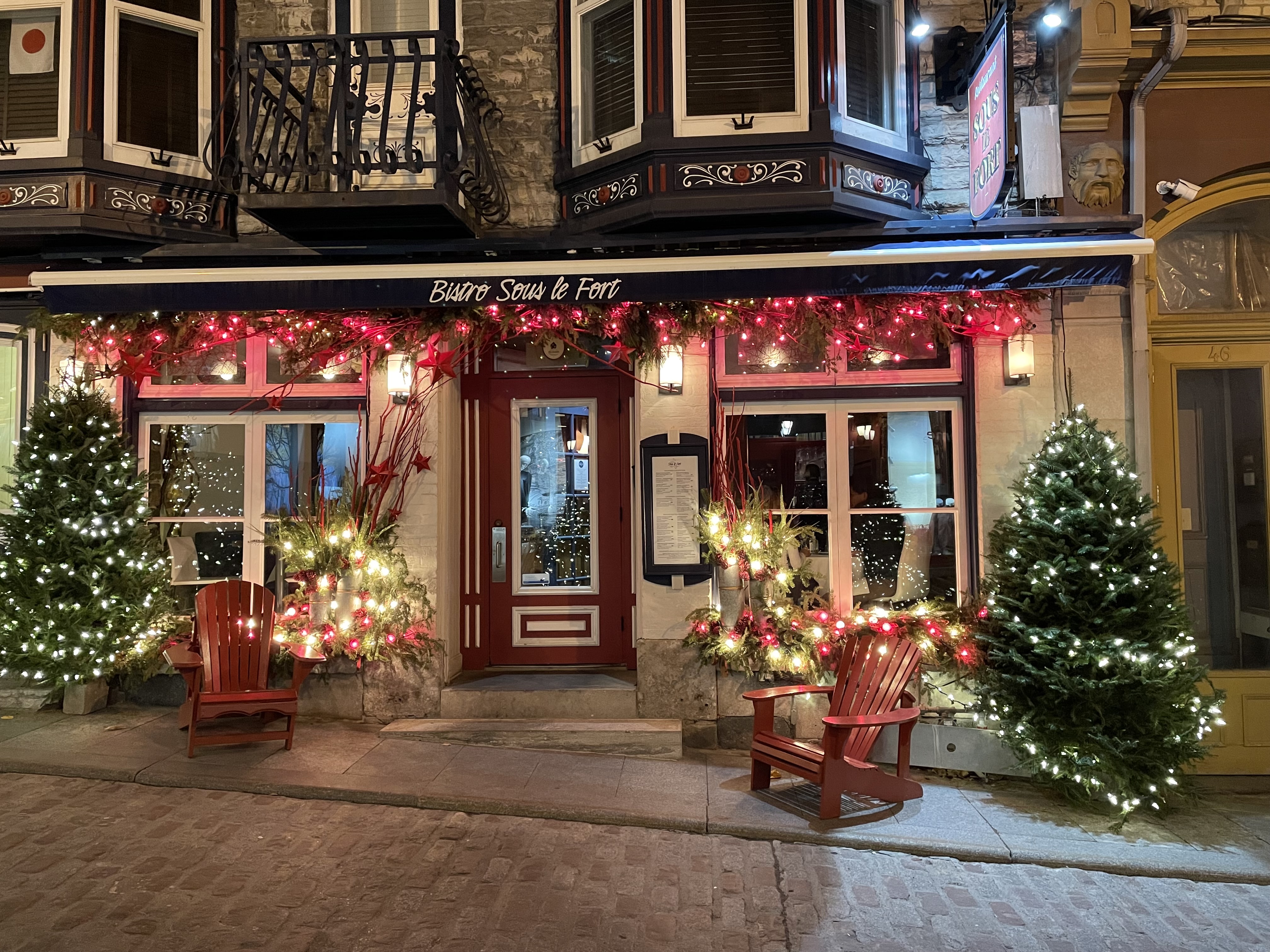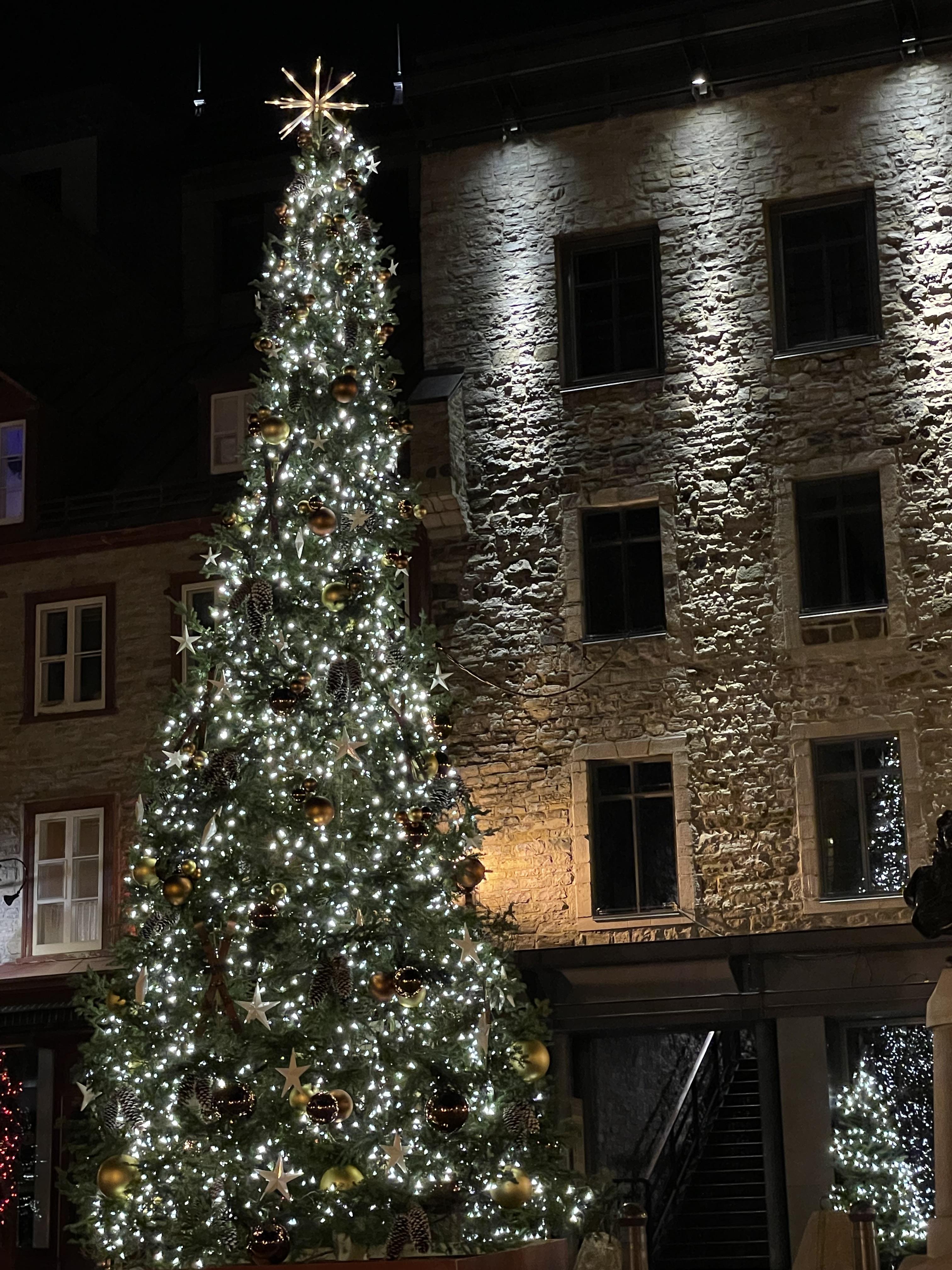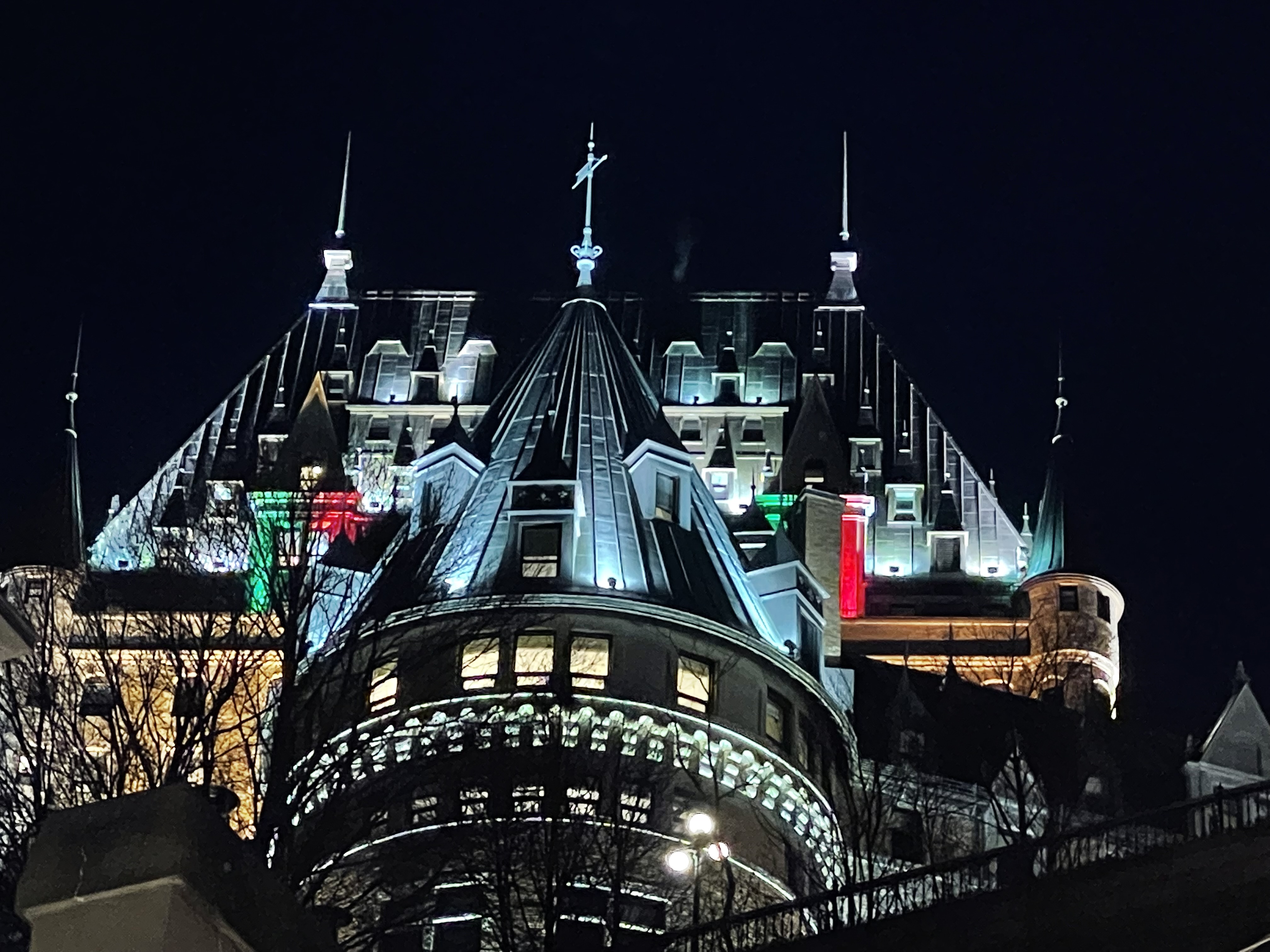 I haven’t posted in quite a while. I usually post when I have the opportunity to take pictures of new and interesting places. Like when I travel. And you know … there has been this pandemic thing that has thrown a wrench in the works for travel. But things are slowly returning to normal so we decided to take a train trip to Quebec city. We are staying in the old city, which is a wonderful place. And it is getting ready for Christmas, so lots of lights at night. Here are a few to give you an idea.