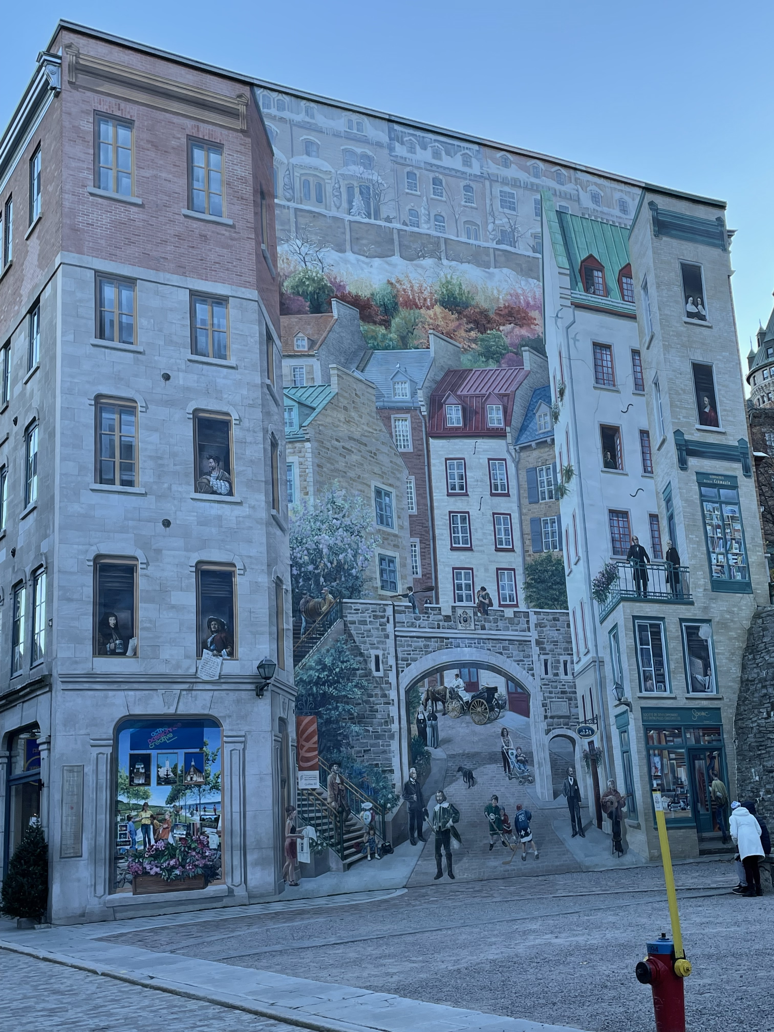 We spent today wandering around the old city enjoying the ambience and looking for places to eat dinner. It’s what we usually do when we travel. One of the interesting things we saw was this building mural, which was amazingly lifelike. The characters in the mural are key characters from the last 400+ years of Quebec history.