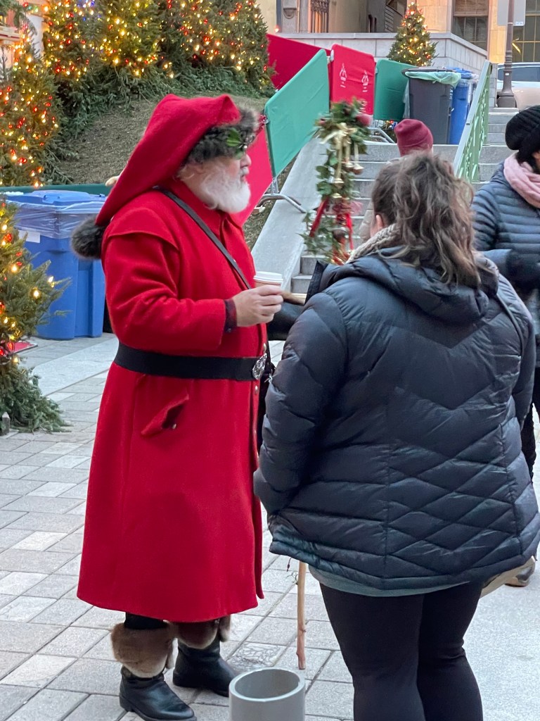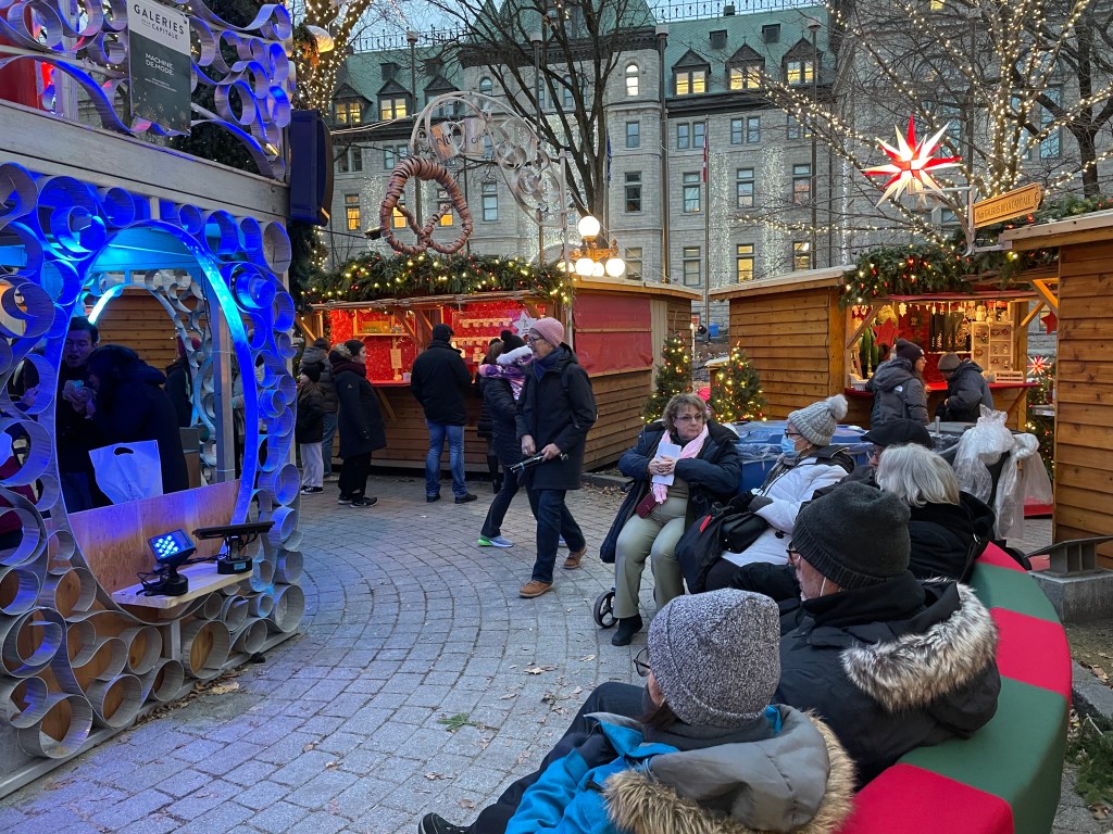 The Christmas market opened today so we had to check it out. The vendors were thrilled to be there – last year the market was closed because … well, you know why. But this year everyone was out in force, including Père Noël.
