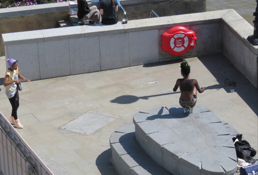 One of the many things that fascinate me is watching professional photographers at work … and taking pictures of them, taking pictures of their models. As I was crossing the Millennium Bridge I spotted this scene. I assume they had carefully selected the angle to provide the perfect backdrop for the photograph, but I was more interest in this perspective. But of course, I’m not getting paid.