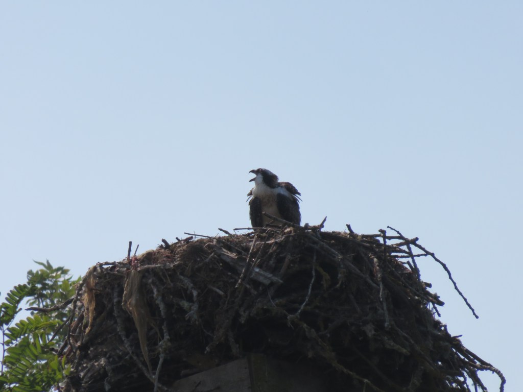 While waiting for the ferry, we spotted a nest with a juvenile Peregrine falcon (we think) calling for food from its parents.