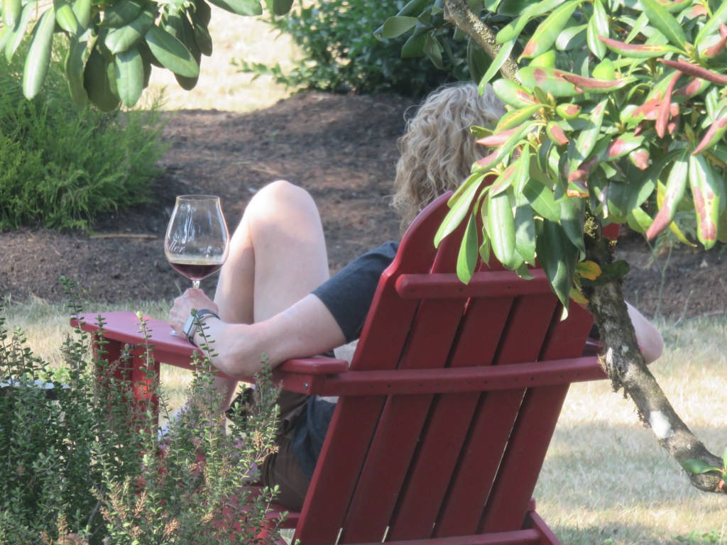 Then it was home where our designated driver had a glass of wine in her happy place.
