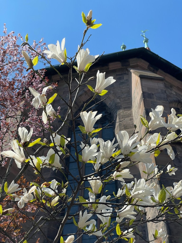 The lovely spring weather means that there are new leaves and blossoms everywhere. This was especially welcome because at home we are having freezing rain and power outages.