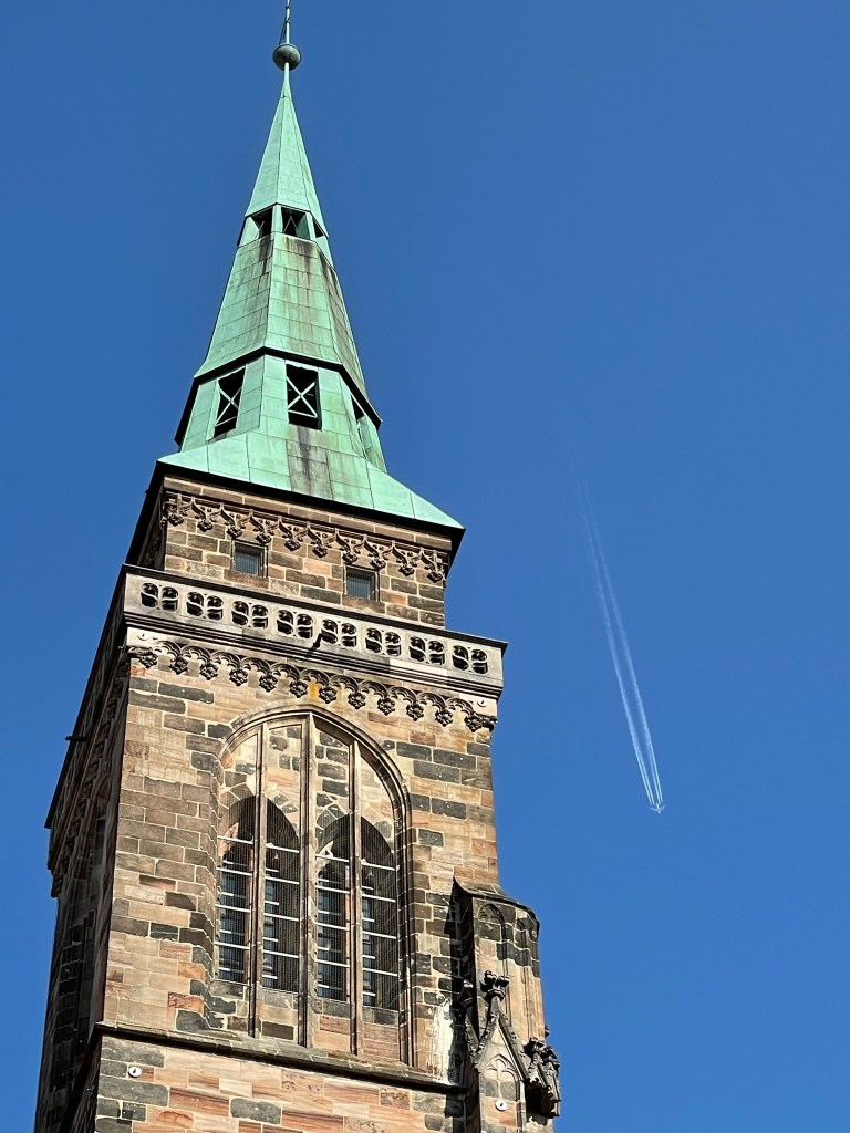 We spent the day wandering around Nuremberg with no particular objective, other than enjoying the ambience of a medieval European city, the lovely spring weather, and the contrast of old and new.