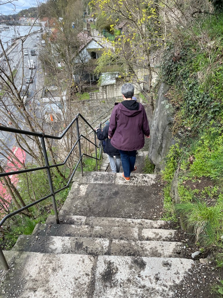Today we decided to take the Passau Castle hike which involved hiking through the old town, then up the side of the hill to the castle, which dates back to at least 1499. This picture gives you an idea of the scale of the hike up stone steps that snake back and forth up the side of the cliff.