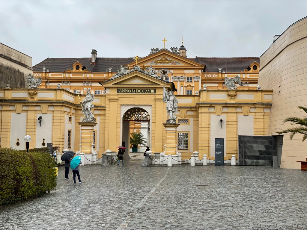 We had been booked to take the Durnstein walking tour, but decided we weren’t all that interested in getting stuck walking in the rain. So we walked on our own up to the Melk Abbey. We still had to walk in the rain, but we had the option of heading back anytime we wanted.