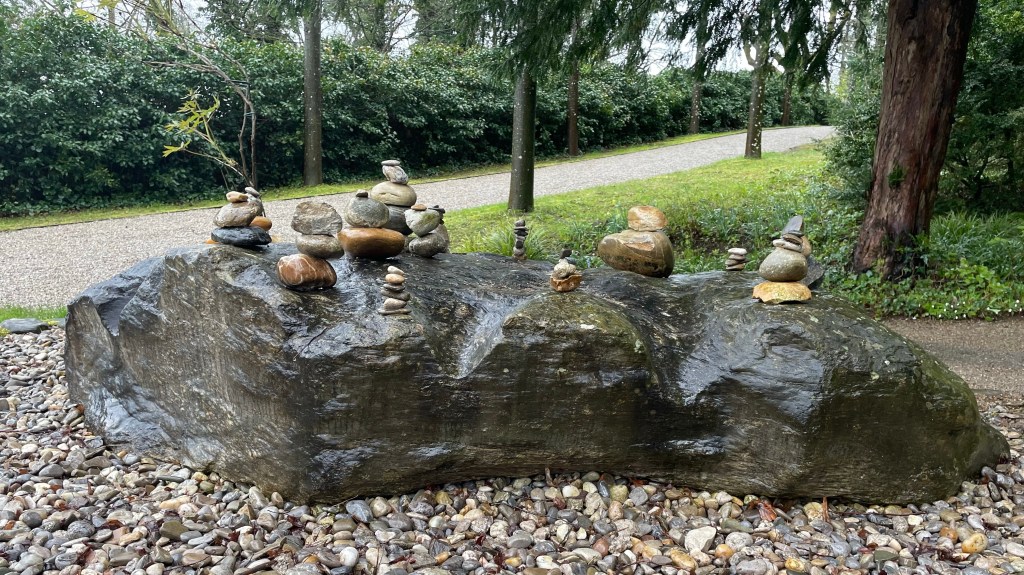 We had the option of touring the abbey museum and chapel, but we opted instead to walk through the very extensive abbey gardens. I know, I know. I said we wanted to avoid the rain, but the rain was very light, the gardens looked intriguing, we didn’t have time to do the museum justice, and I’ve already shown you far too many pictures of chapels. And with the rain, we pretty much had the place to ourselves.