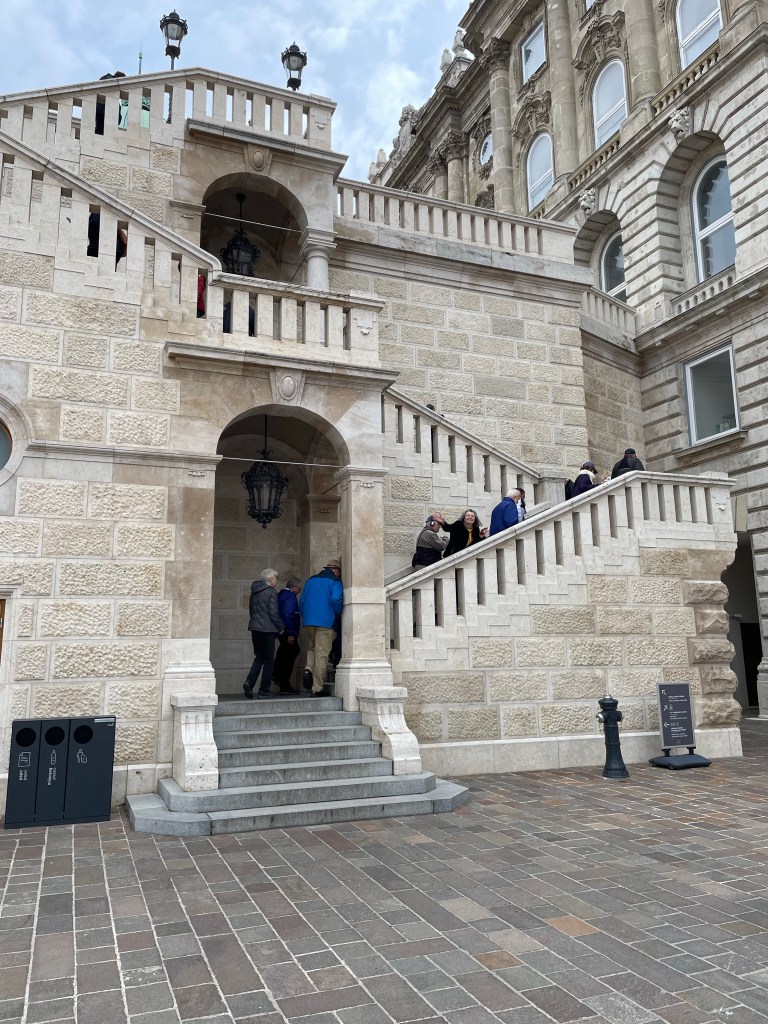Our river cruise is coming to an end with our arrival in Budapest early today. We spent the day getting an introduction to the city and its history. And we learned how the city’s name should be pronounced. I’ll give you a hint – the name doesn’t rhyme with “pest”. The name ends with a sound more like “pescht”. Before we could see the city, we had to climb more steps…