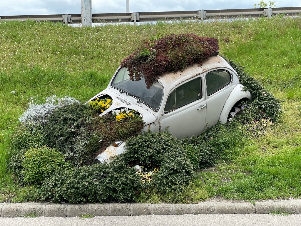 We took it easy today, mostly just walking around Budapest and enjoying the lovely spring weather. We began by heading up towards Hero’s Square. Along the way, we came across this, which certainly qualifies as an interesting use for a car.