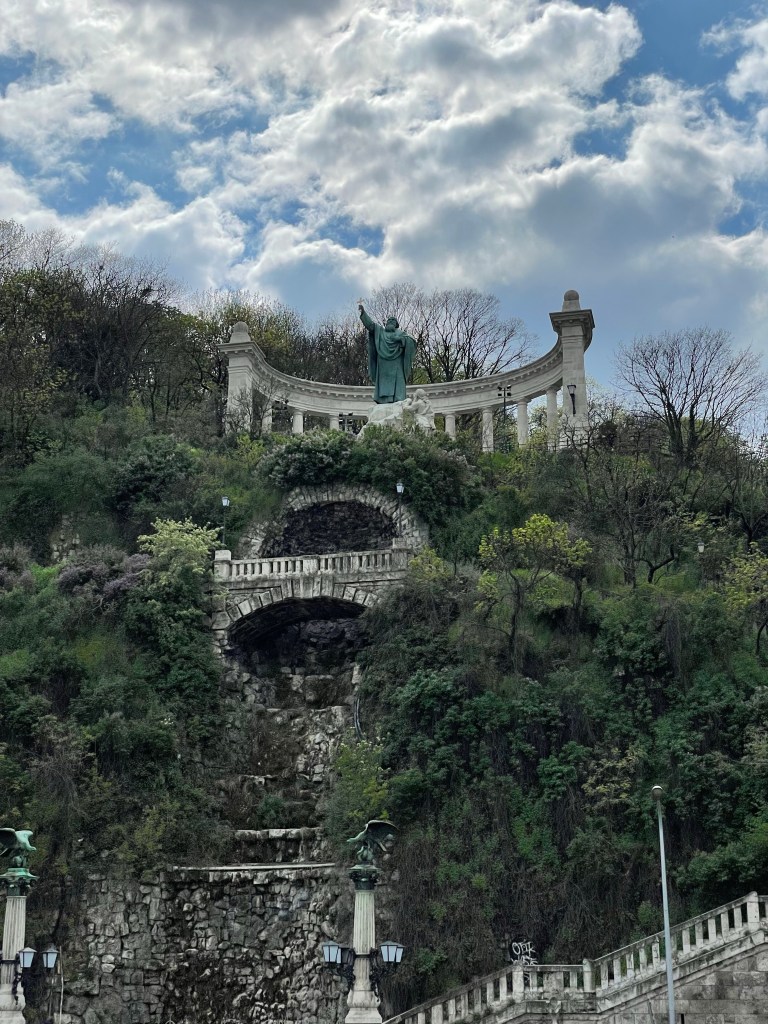 As we headed back to the Pest side of the city, we spotted a monument that we’d first seen at breakfast as we sailed into Budapest. It was the perfect angle, almost making it look as if the saint (it has to be a saint, right?) was summoning the heavens…