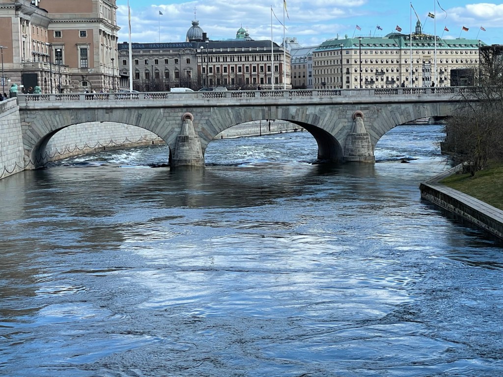 It was a lovely sunny day, with the temperature near 20 Celsius. Apparently this is the first really nice day of spring this year, and it felt like the sunshine brought everyone out onto the street. We used the day to just walk around outside and take in the city. We started by walking over the bridge into the old city.