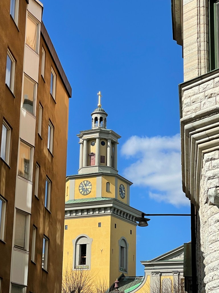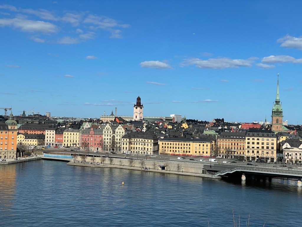 We headed south into Sodermalm, eventually ending up on a hilltop providing lovely views of Stockholm. The warm weather, and sensible liquor licensing laws, brought people up onto the hill where many groups were enjoying chatting with friends while sharing a glass of Prosecco. Very civilized.