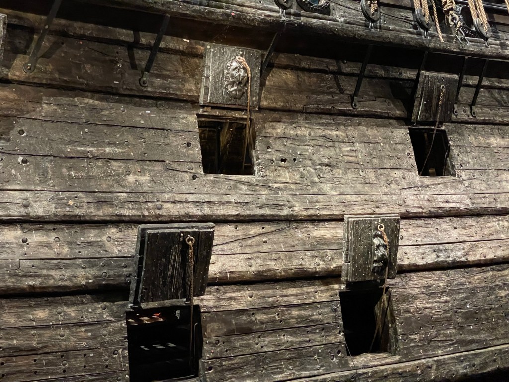 The Vasa had two cannon decks as well as a third set of cannons on the top deck. This made it top heavy and may have contributed to its sinking. The lower cannon ports were also very close to the waterline, which didn’t help.