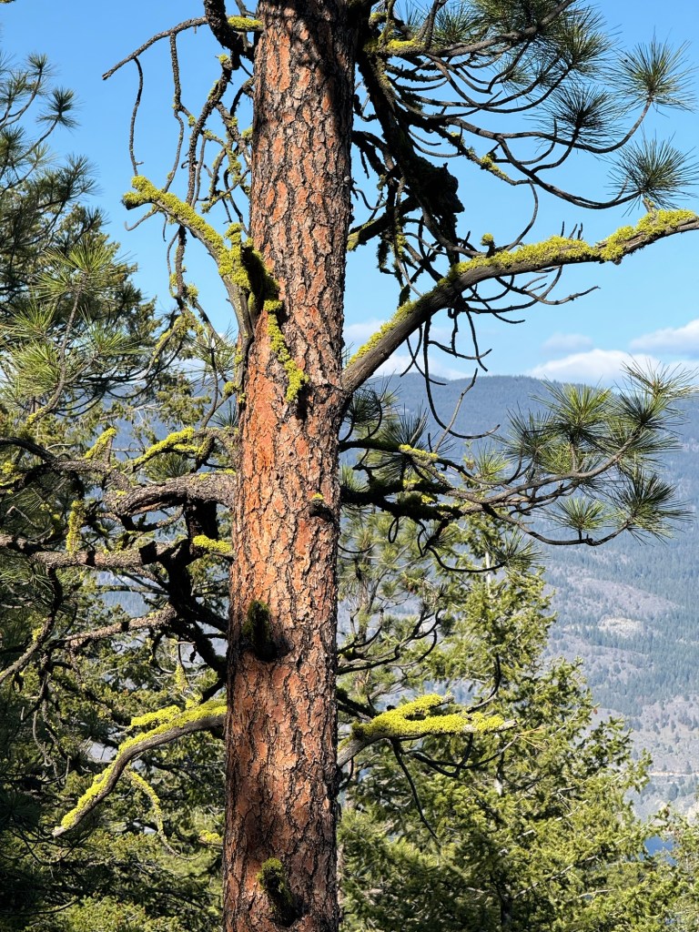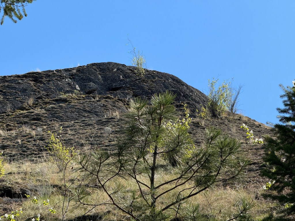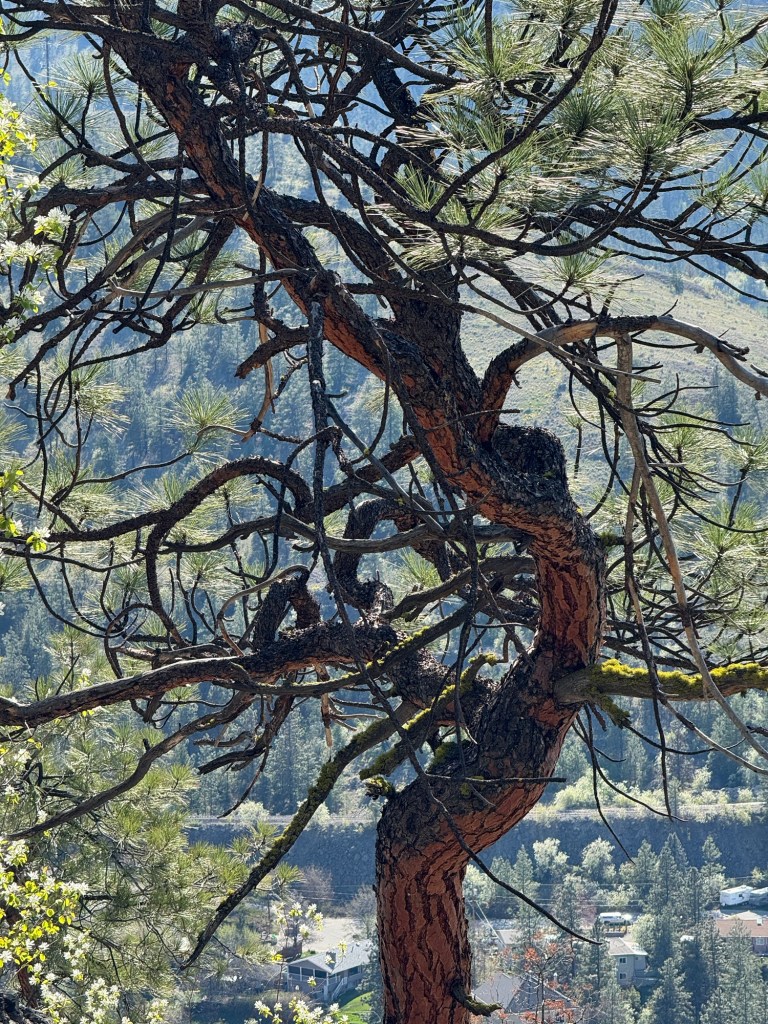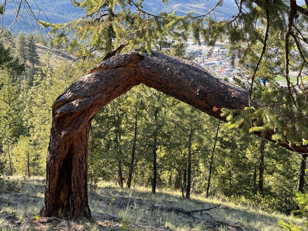 After a day of wine tasting yesterday, we decided it would be appropriate to enjoy the hiking trails in the Okanagan, so we headed over to the Giant’s Head Mountain Park. There are a number of well marked trails in the park, from “The Grind” (just as hard as it sounds) to the “Friendly Giant”. We were looking for exercise, but we also wanted to enjoy ourselves, so … no surprise here … we went for the Friendly Giant. It was plenty difficult enough for us, but the views, and the vegetation along the way, were stunning. I’ll start with this one, along the trail.