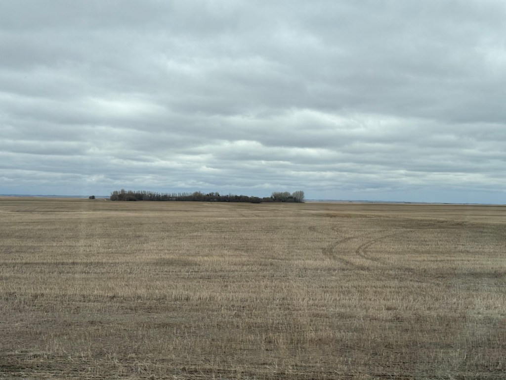 We spent the day traveling across the Canadian prairie. I grew up in this area, so it was nice to see it again from the train. This picture is fairly typical of what I remember from my childhood.