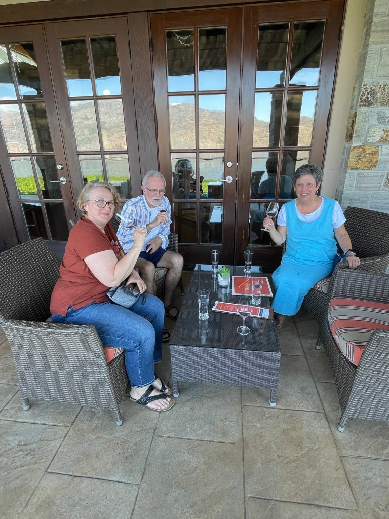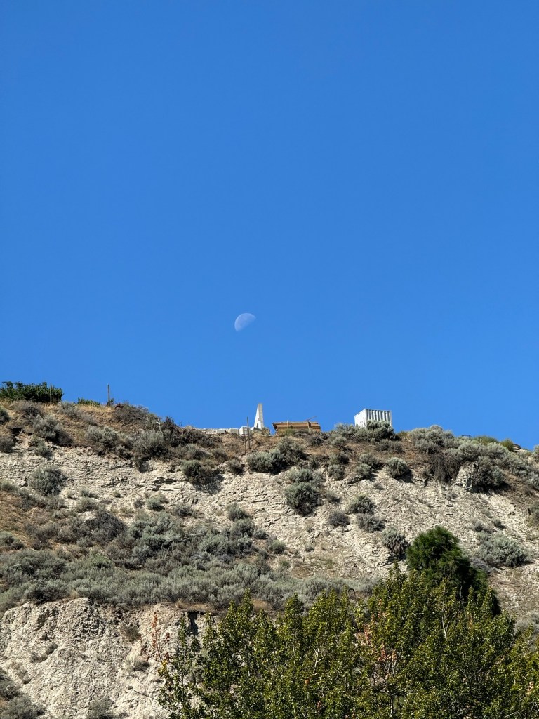 The weather was much better today, and we decided to have a slow day to enjoy the weather. We started with lattes on the patio, where I watched to moon set over the hills.