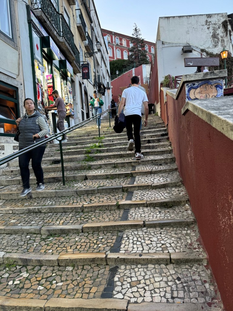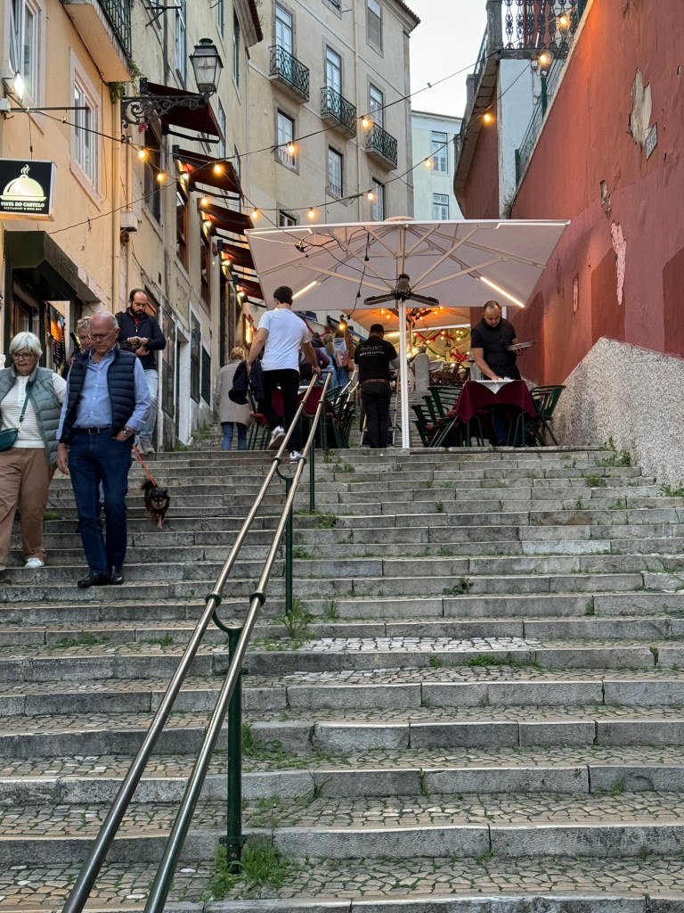 And since this was a dry run day, we decided to take a look at the apartment we’re staying at when we come back from Porto. It’s quite close – about half a kilometer. It looked like an easy walk, and it would have been too, but for one small detail. It looked flat on the map, but it certainly wasn’t flat in reality. Our first hint of things to come was a short stairway and buildings rising up to the sky…