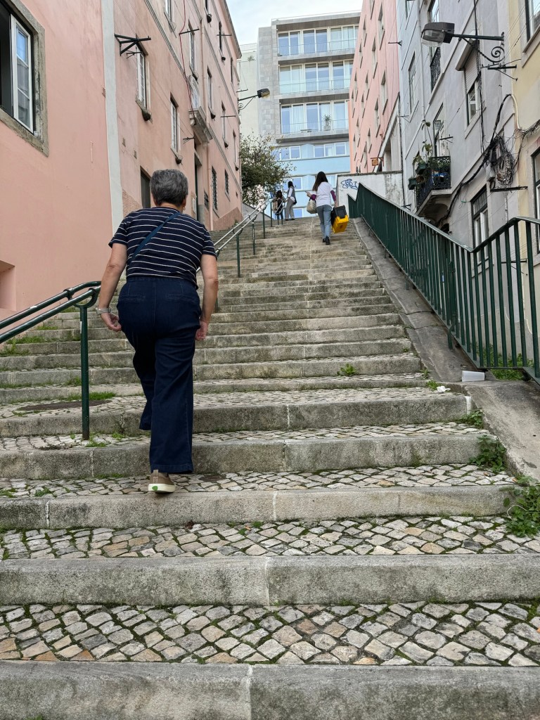 And then there are the hills, with steep roads and steps. So many steps. But note the paving stones here as well.