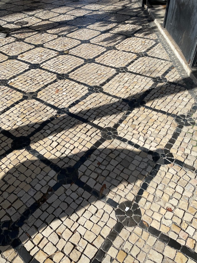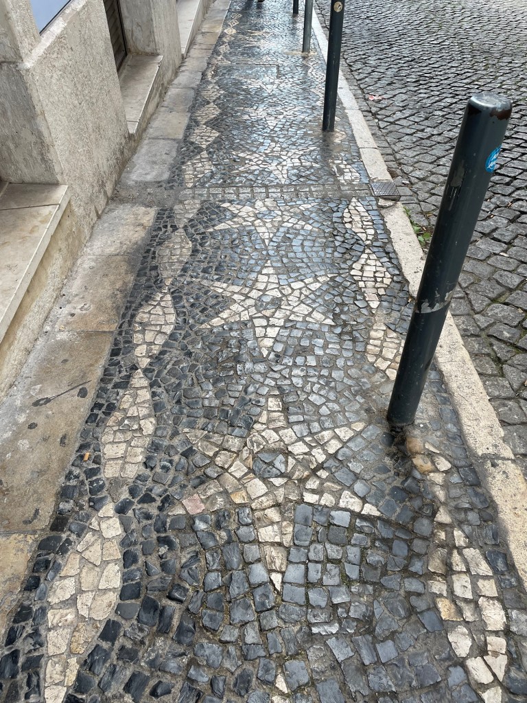 If you are in the old town of Lisbon, there are a number of things that are ubiquitous. One is cobblestones in mosaic patterns on the roads and sidewalks. They are everywhere.