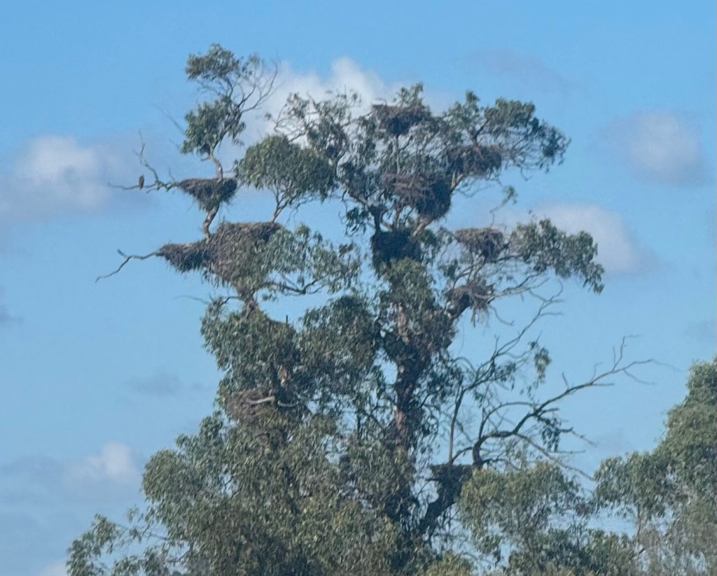 Storks also nest in the trees. The dark clumps you see here are all stork nests.