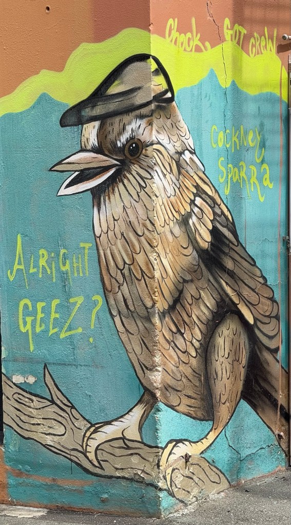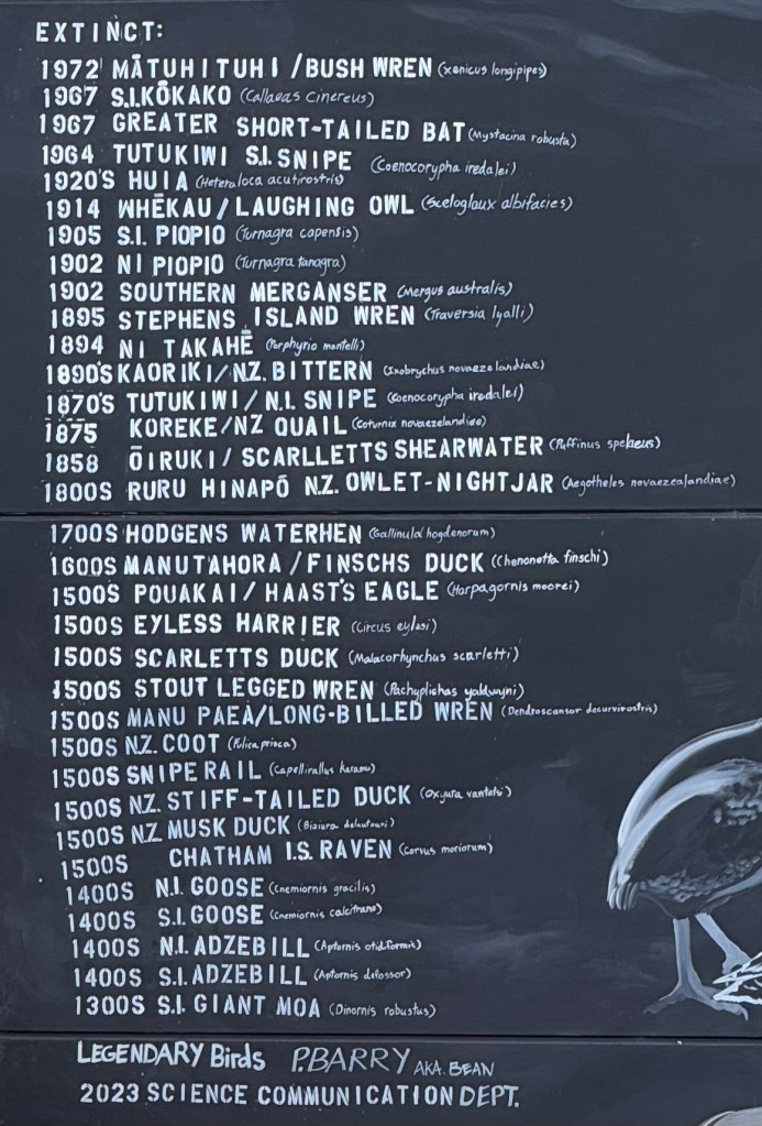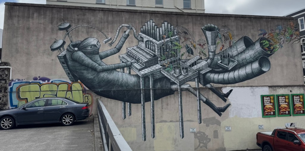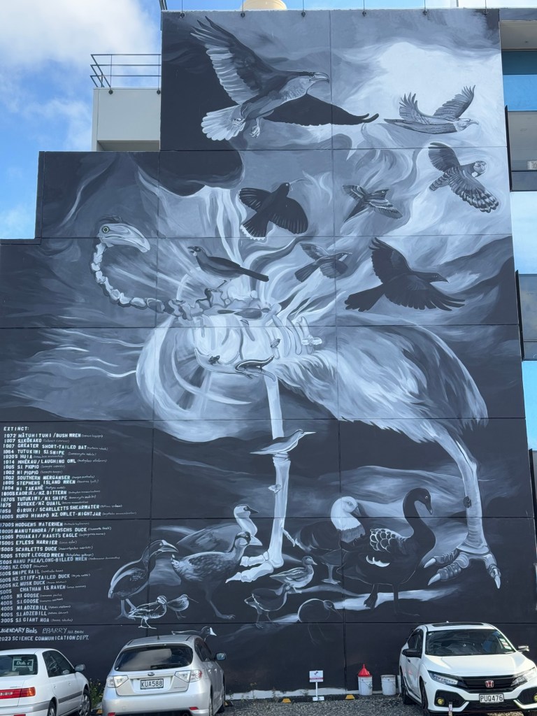 I spotted this next mural on the way to dinner. A very powerful image that highlights New Zealand native species that have gone extinct in the last thousand years.