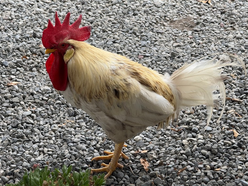 We had some entertainment for our tasting, with the local rooster checking us out.