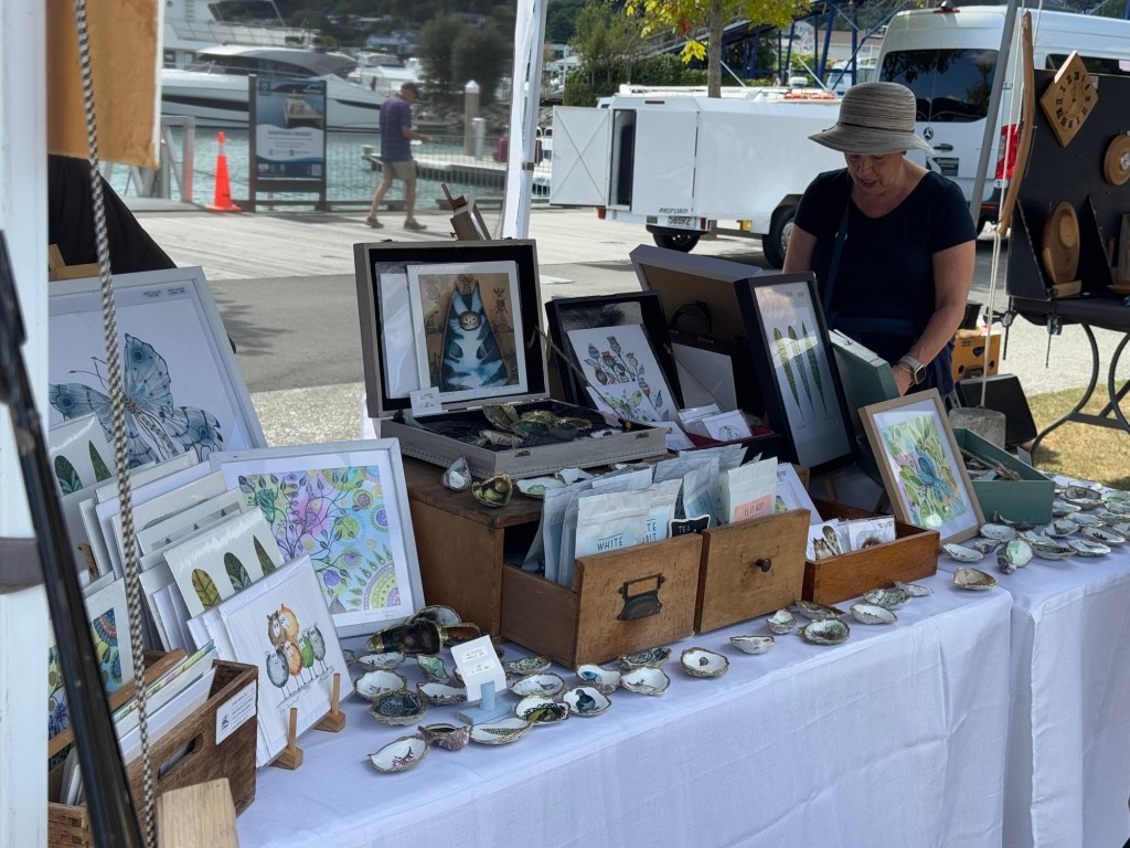We had to check in for the ferry from Picton to Wellington no later than 1:15. It’s only half an hour to drive to Picton, but traffic and roadworks can cause significant delays, so we arrived early and wandered around town. It is a pretty little town nestled between green hills.