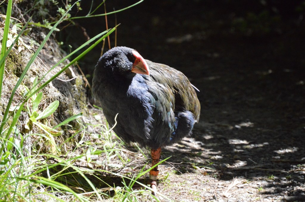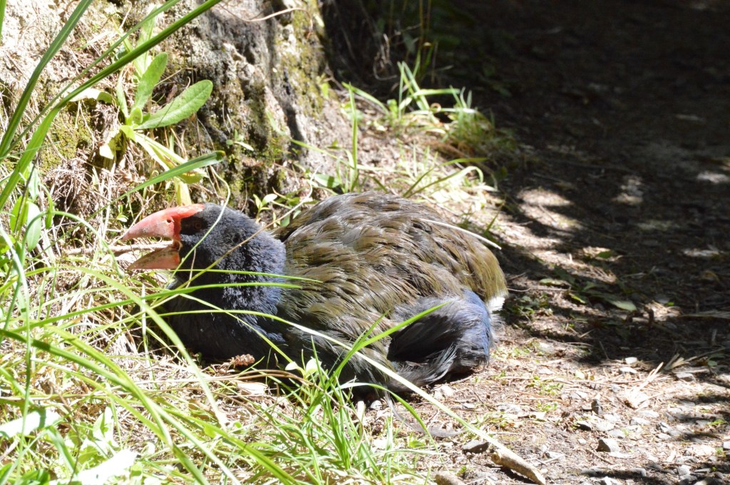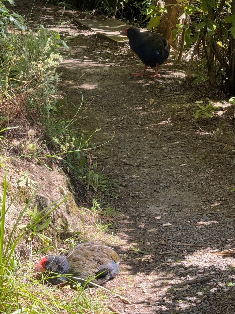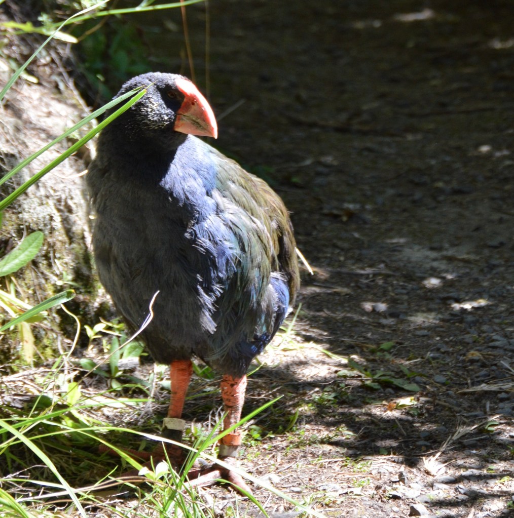 One of the main attractions at Zealandia is the Takahe. These flightless birds were believed to be extinct, until a small group were discovered in a remote area on the South Island in 1948. They are slowly making a recovery – there are currently over 500 individuals, some in Zealandia. These birds mate for life, and we were very fortunate to come across a pair.
