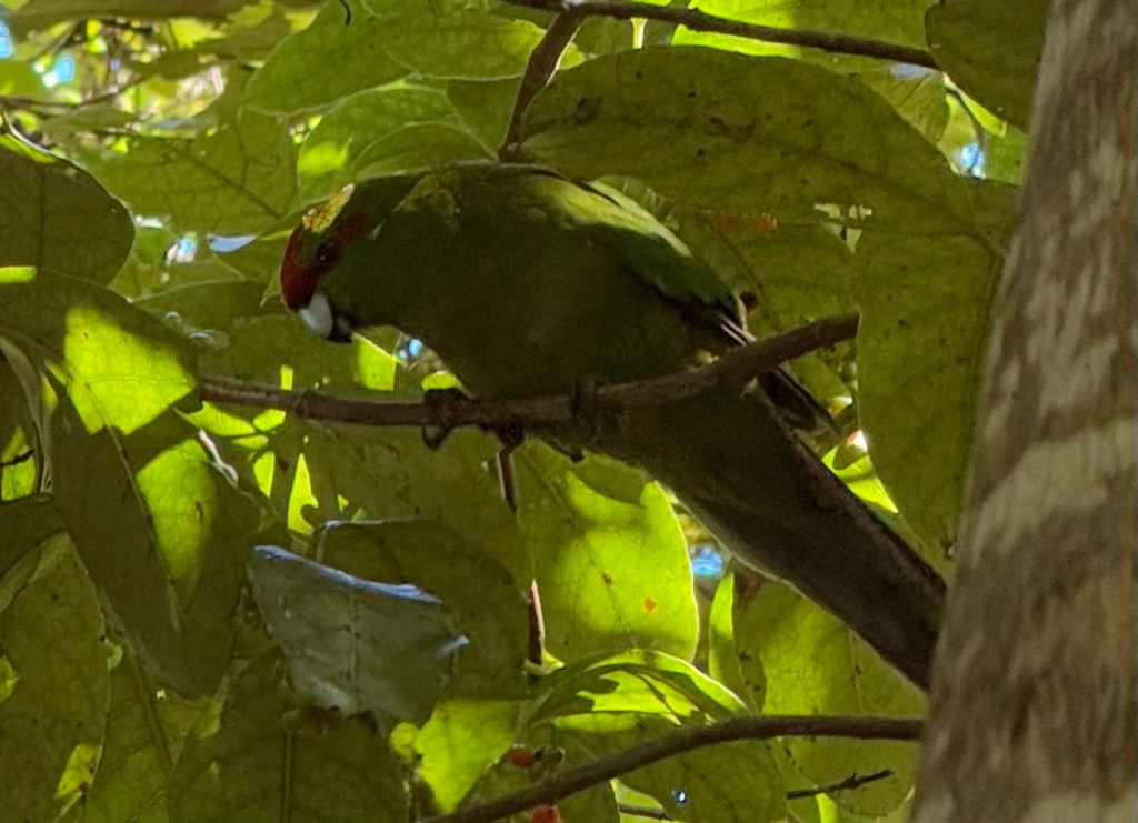 When we were nearly back, Jan suddenly spotted a Kakariki, which is a native New Zealand parakeet. The kakariki has excellent camouflage, so seeing it was a real treat. Kudos to Jan.