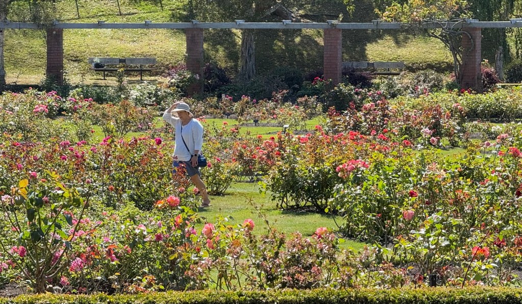 Jan decided that she wanted to follow every path in the rose garden. After a while, we went and sat in the shade and watched her.