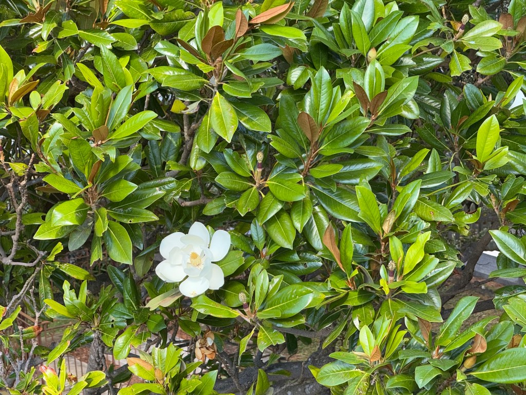 As we were leaving the botanical garden we passed a magnolia tree with a single blossom.