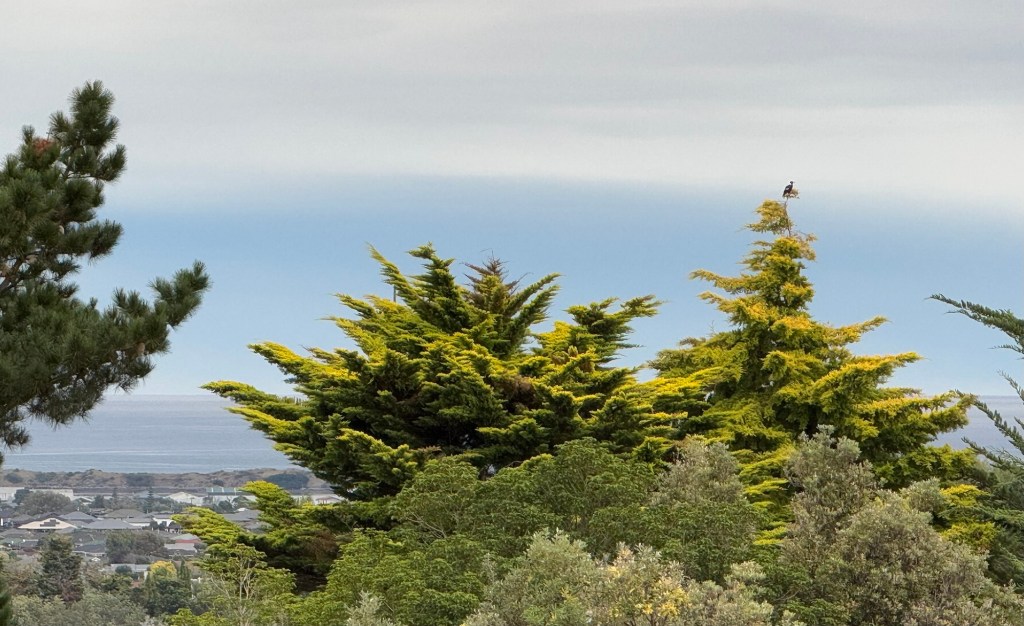 You also have views over the surrounding pastoral scenery, and can listen to the sheep, and the Tui.