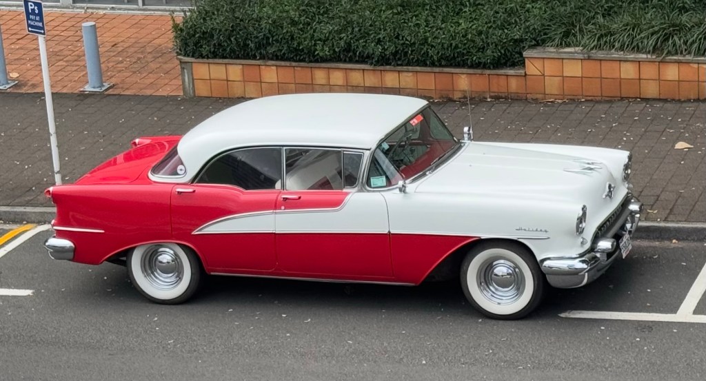 On our drive up from Whanganui we started seeing American flags (not something we were seeing before) and then classic American cars. At first we thought “how strange” but before long we realized something must be going on here. Sure enough, we’ve wandered into the first day of Americarna, an annual celebration of classic American cars. Over the next few days, some 900 fully restored classic American cars will be on the streets of New Plymouth and the surrounding towns. Here are a few shots taken as we were walking about today.