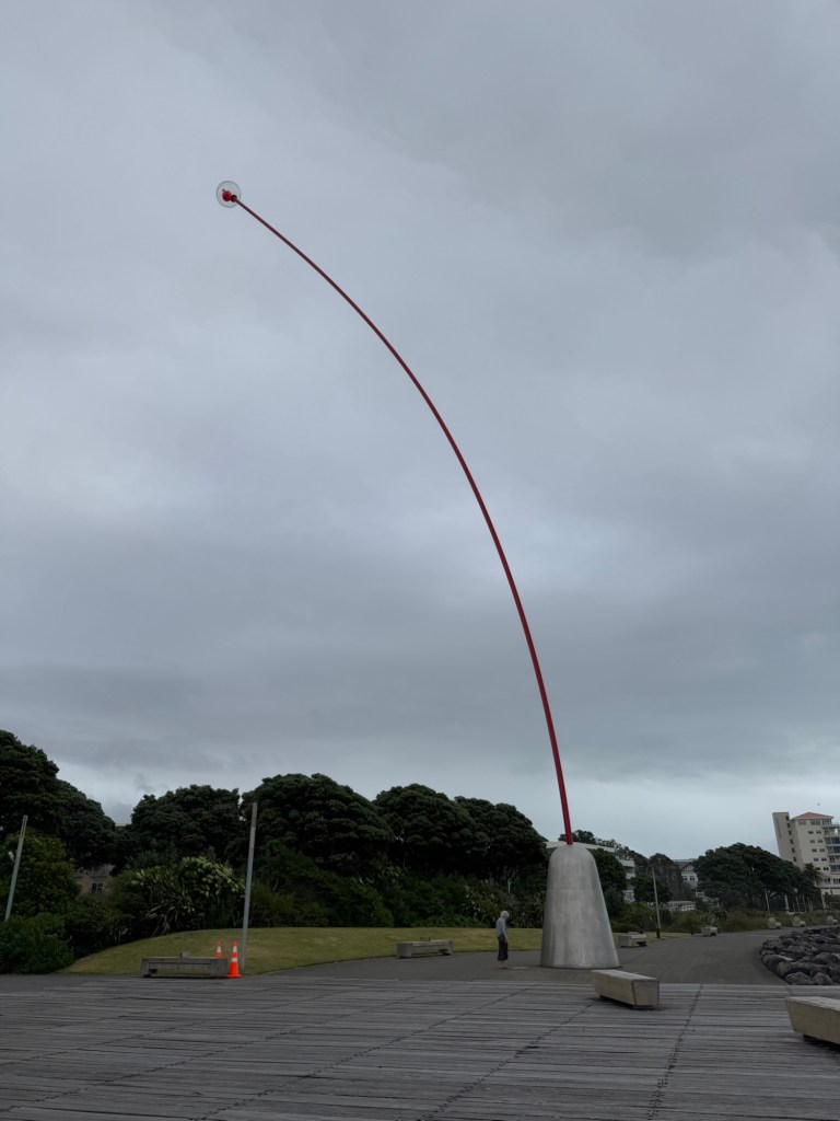 And here is another iconic landmark – the Wind Wand, which bends in the very strong breeze that blows off the Tasman sea. Note the person at the foot of the wand for scale.