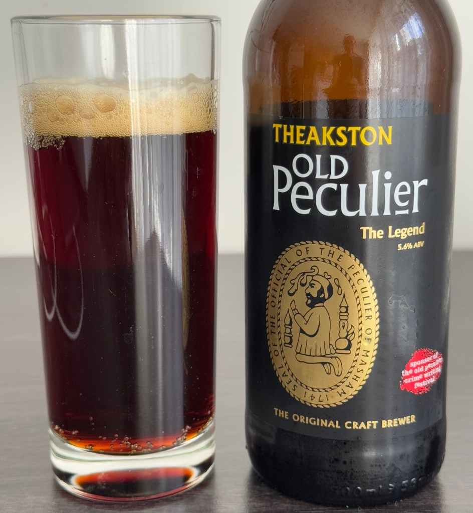 I don’t really have a favourite beer. I enjoy a variety of beers from a range of styles. Generally I’m drawn to “interesting” beer, whatever it might be. But if I did have a favourite beer, it would be Theakston Old Peculier. Brewed in the small Yorkshire town of Masham, Old Peculier doesn’t always travel well, and it’s generally difficult to find. So you can imagine my surprise when Jan spotted a bottle (bless her heart) in the local New World grocery store. Needless to say, my choice of “blog-writing-beer” was obvious.