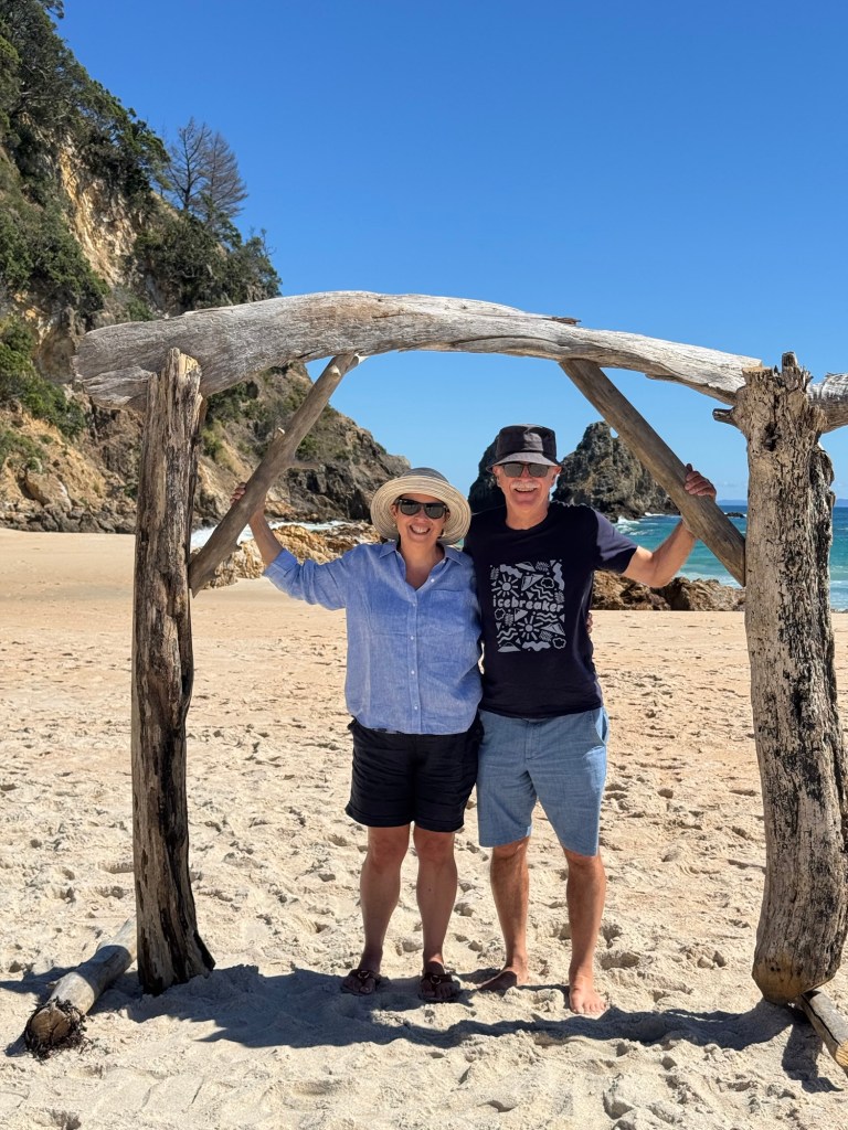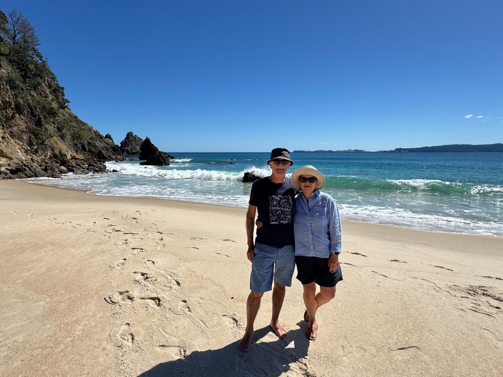 As we were walking along the beach, a couple asked us to take their picture, and we started to talk. They were from Germany on an extended trip to Australia and New Zealand. Like us, they had fallen in love with New Zealand and planned to return, even though for them the flight is even longer than it is for us. As we were leaving, they asked if we wanted them to take our picture as well.